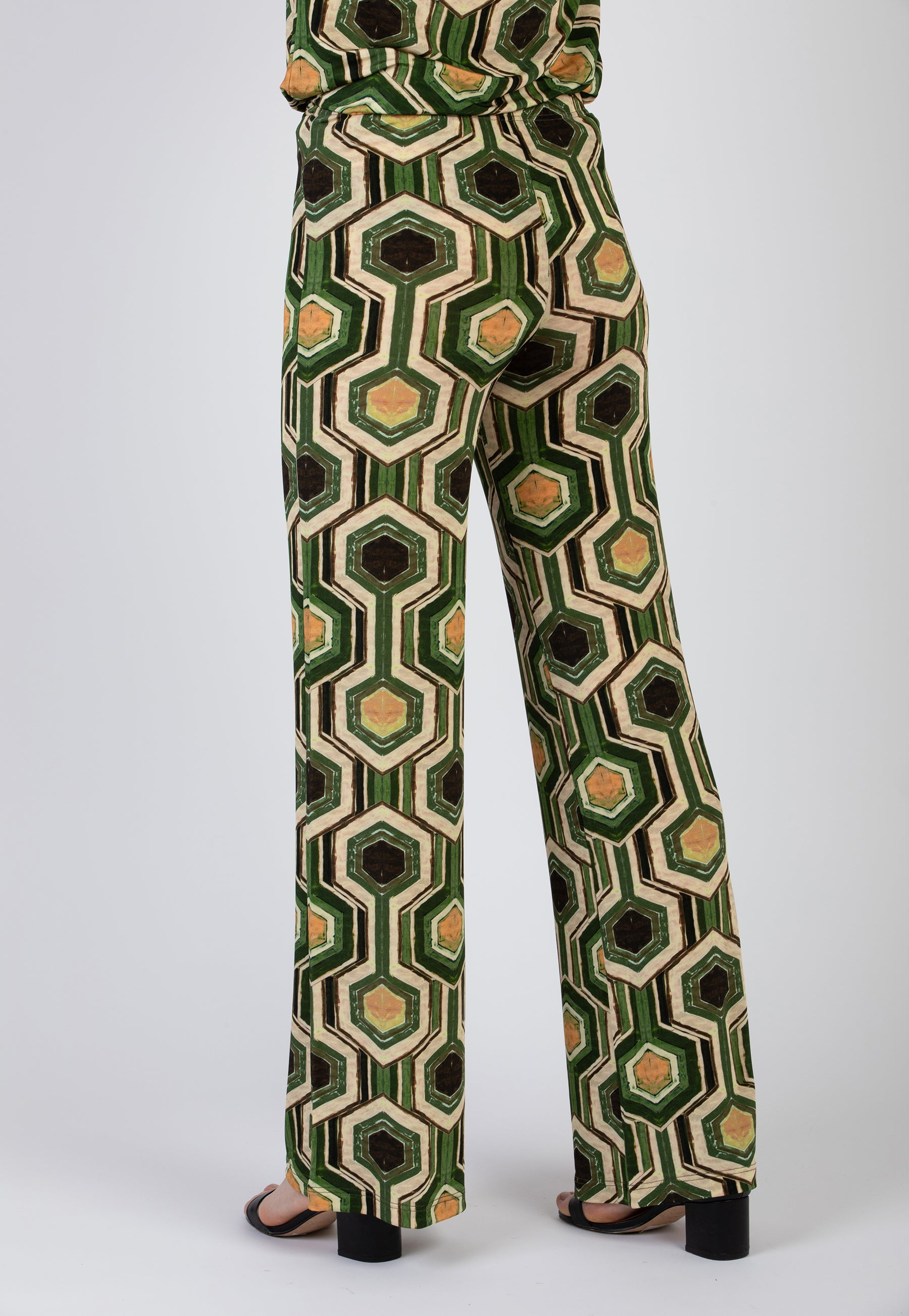 Un pantalone leggero e fresco in maglina di viscosa, perfetto per la stagione estiva. Con elastico in vita per una vestibilità comoda e fantasia moderna. Ideale per un look casual ma elegante. Tecnico e confortevole. Capo prodotto in Italia. Made in Italy.
