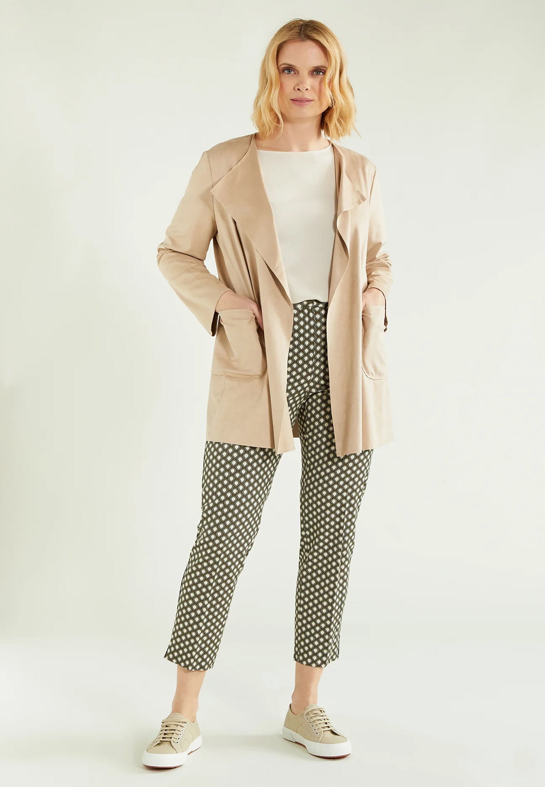 Questo pantalone donna over è perfetto per chi cerca un fit comodo e alla moda. Con una linea curvy e un elastico in vita, garantisce un comfort ottimale per tutto il giorno. Realizzato in tessuto ottoman di cotone e viscosa, con una fantasia unica che si distingue dagli altri pantaloni.