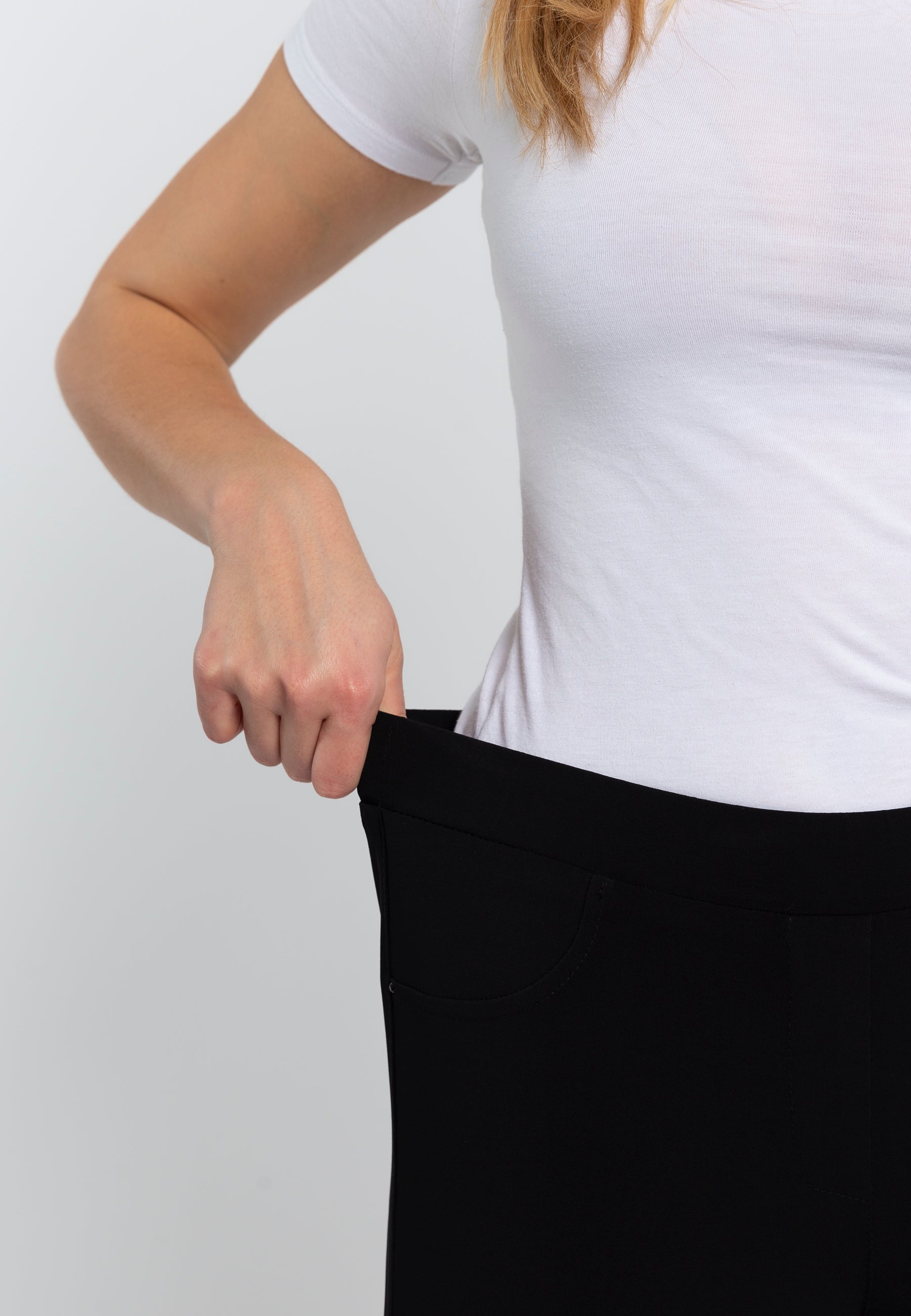 Scopri il pantalone donna in punto Milano leggero firmato Carla Ferroni, perfetto per chi cerca comfort ed eleganza in ogni occasione. Realizzato con un tessuto morbido e piacevole al tatto, questo pantalone è interamente elasticizzato in vita, assicurando una vestibilità pratica e confortevole che valorizza la silhouette senza costringere. L'alta qualità dei materiali e l'attenzione ai dettagli, da sempre distintive del brand Carla Ferroni, rendono questo capo ideale sia per look casual che per outfit più raffinati. Versatile e facilmente abbinabile, è la scelta ideale per una donna dinamica che desidera sentirsi sempre a proprio agio con uno stile impeccabile. Prodotto in Italia. Made in Italy