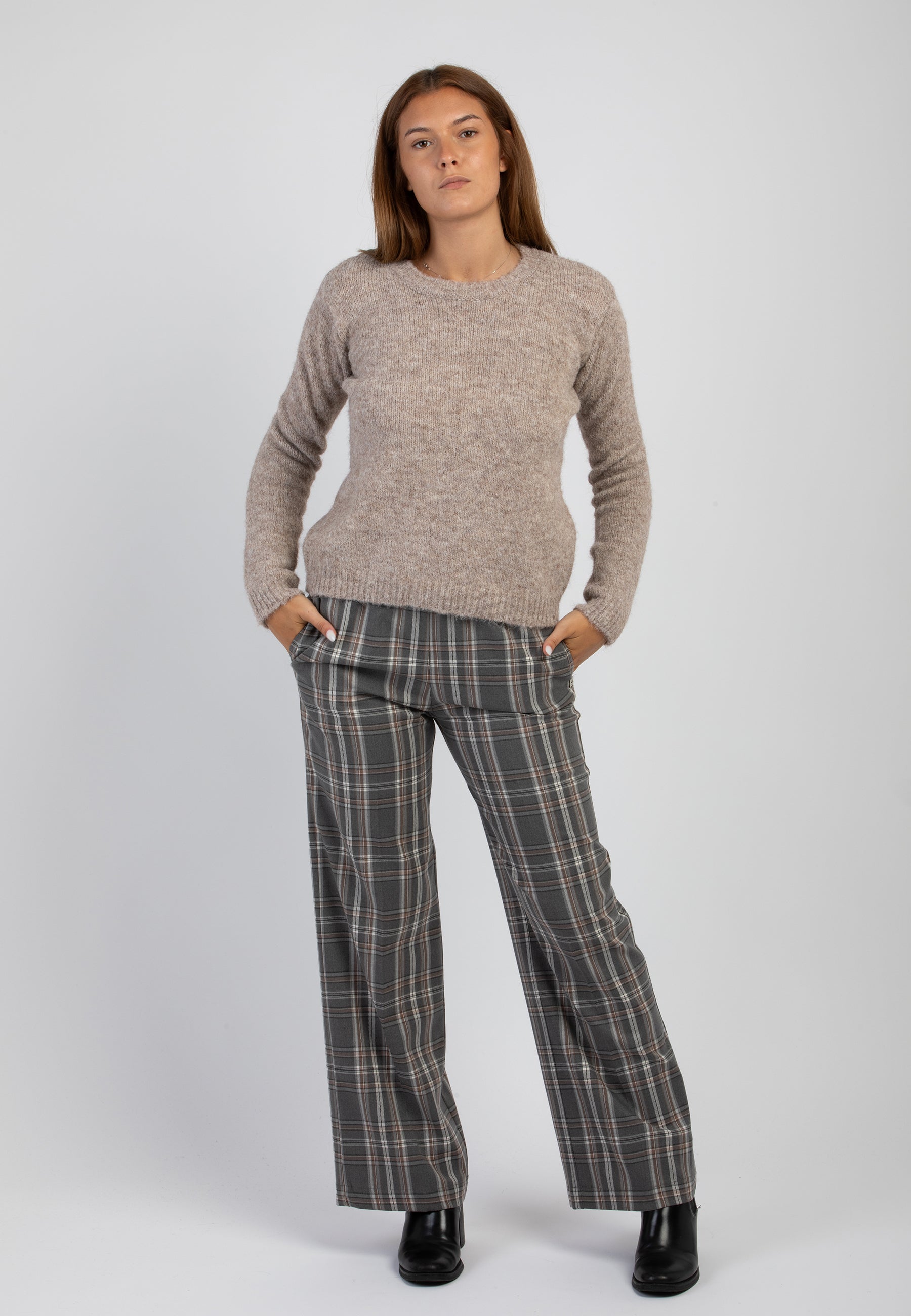 Con il nostro pantalone palazzo scozzese tutto elastico in vita, puoi godere del massimo comfort e della libertà di movimento. Grazie al suo design elegante e alle tasche pratiche, questo pantalone è perfetto per un look raffinato e funzionale. Perfetto per ogni occasione.