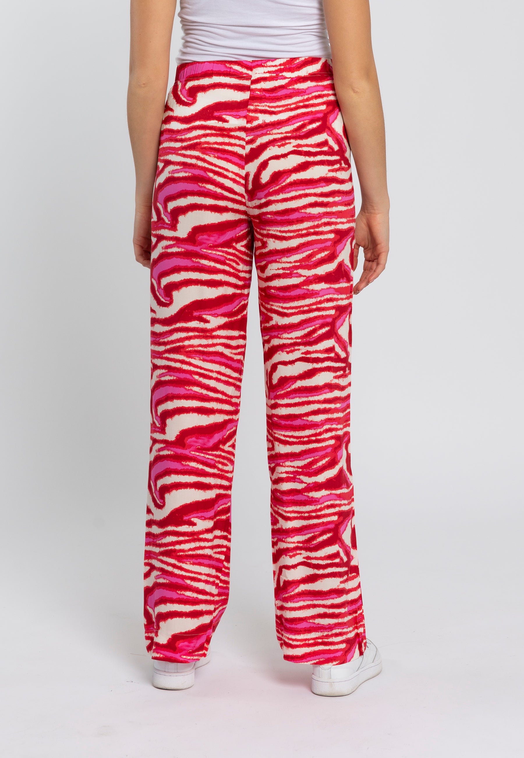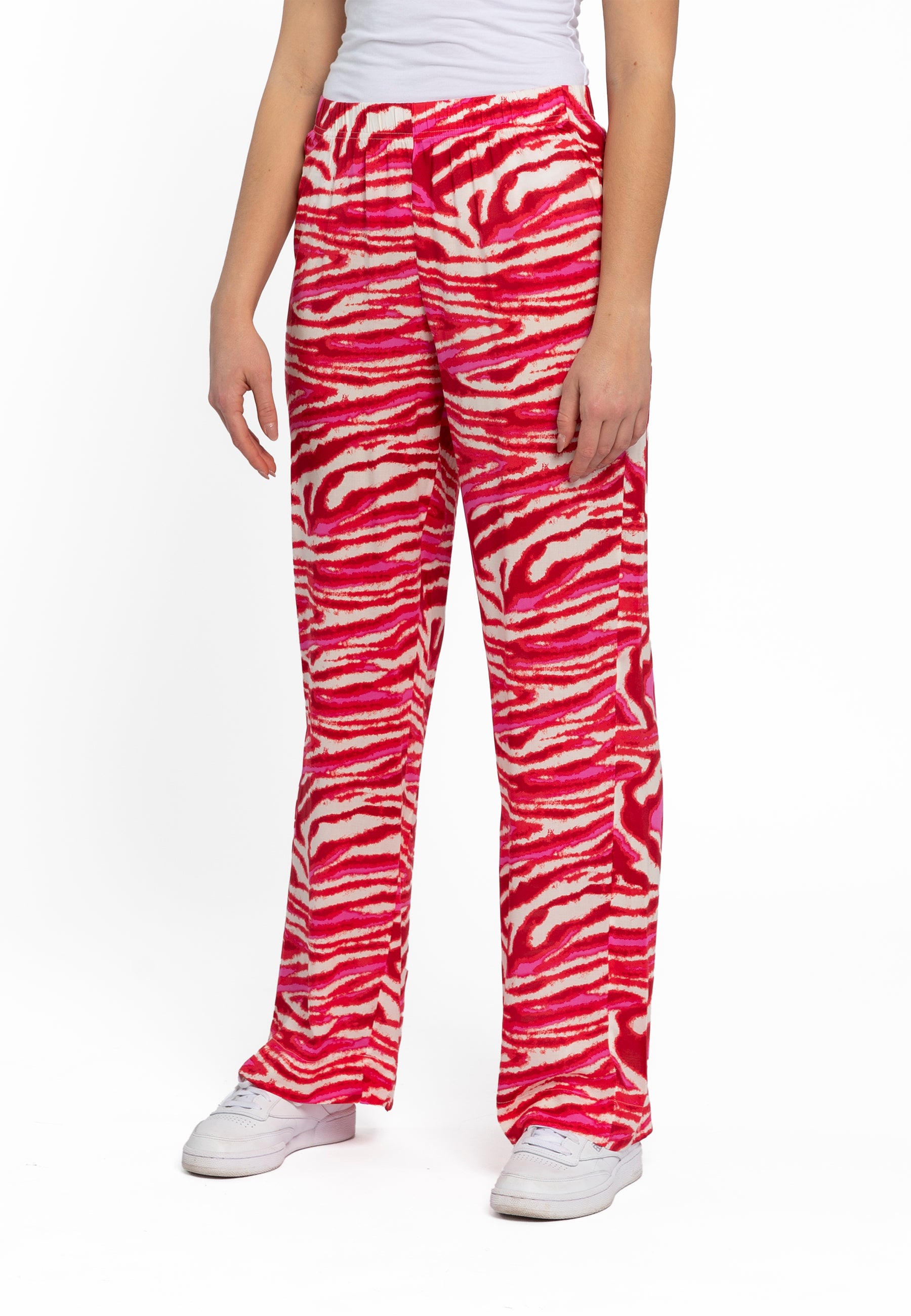 Questo pantalone donna è realizzato in tessuto di pura viscosa che garantisce freschezza e morbidezza sulla pelle. Con una fantasia unica e leggero peso, il pantalone è perfetto per l'estate e le giornate calde. Comodo e alla moda, è ideale per ogni occasione.