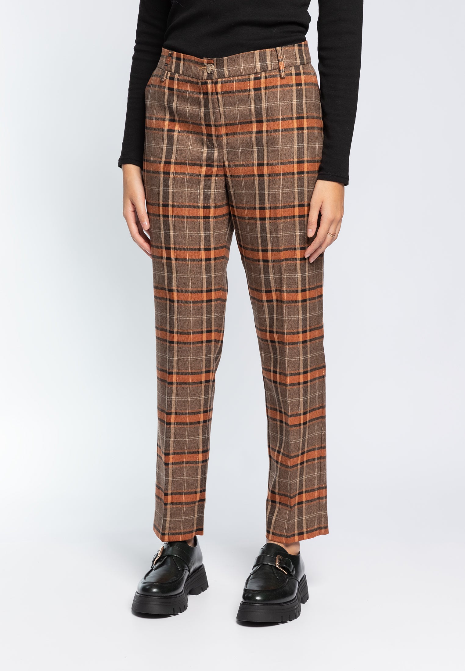 Esplora il nostro esclusivo Pantalone Sigaretta a quadri scozzese da donna, modello MARKUP MW565136, perfetto per un look elegante e alla moda. Dotato di una vita con chiusura a bottone e zip e passanti, questo pantalone offre comfort e stile senza compromessi. Le tasche laterali all'italiana aggiungono praticità al tuo outfit.