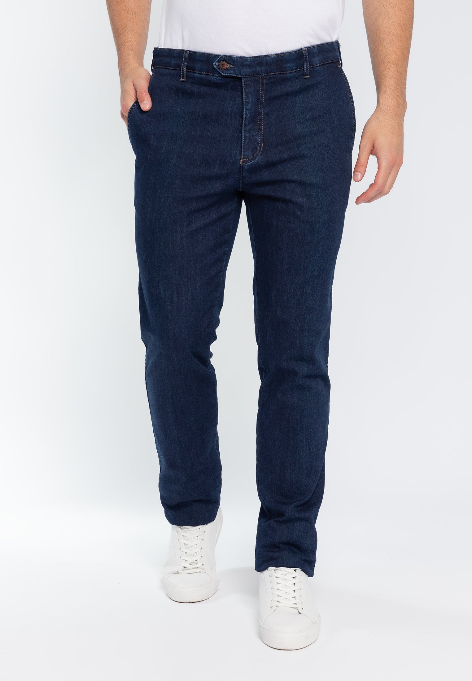 Pantajeans da uomo dal taglio Classico, gamba dritta articolo 8499 TUX, con imbottitura termica perfetta per le giornate invernali. Modello con tasche alla francese, allacciatura con bottone e cerniera. Vestibilità classica con fondo pantalone 20 cm. Molto comodo perfetto per i tuoi look quotidiani.