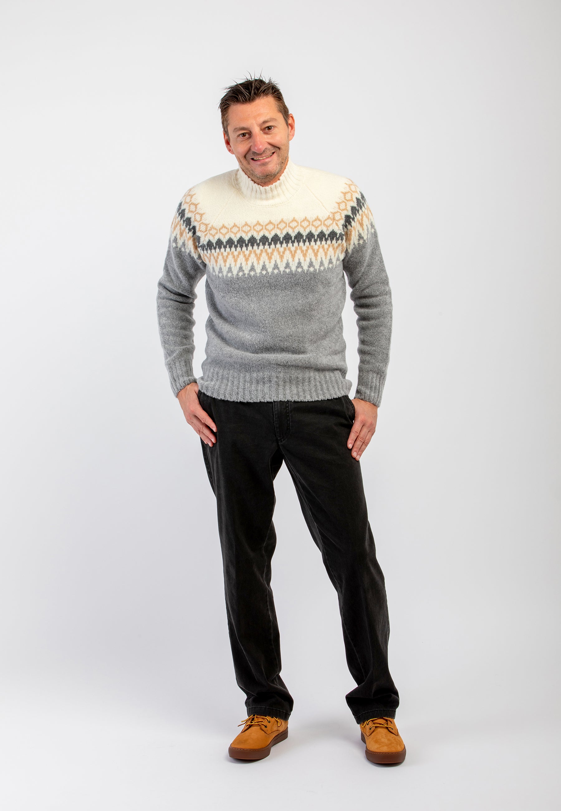 Il Modello è alto 180 cm ed indossa la taglia 48