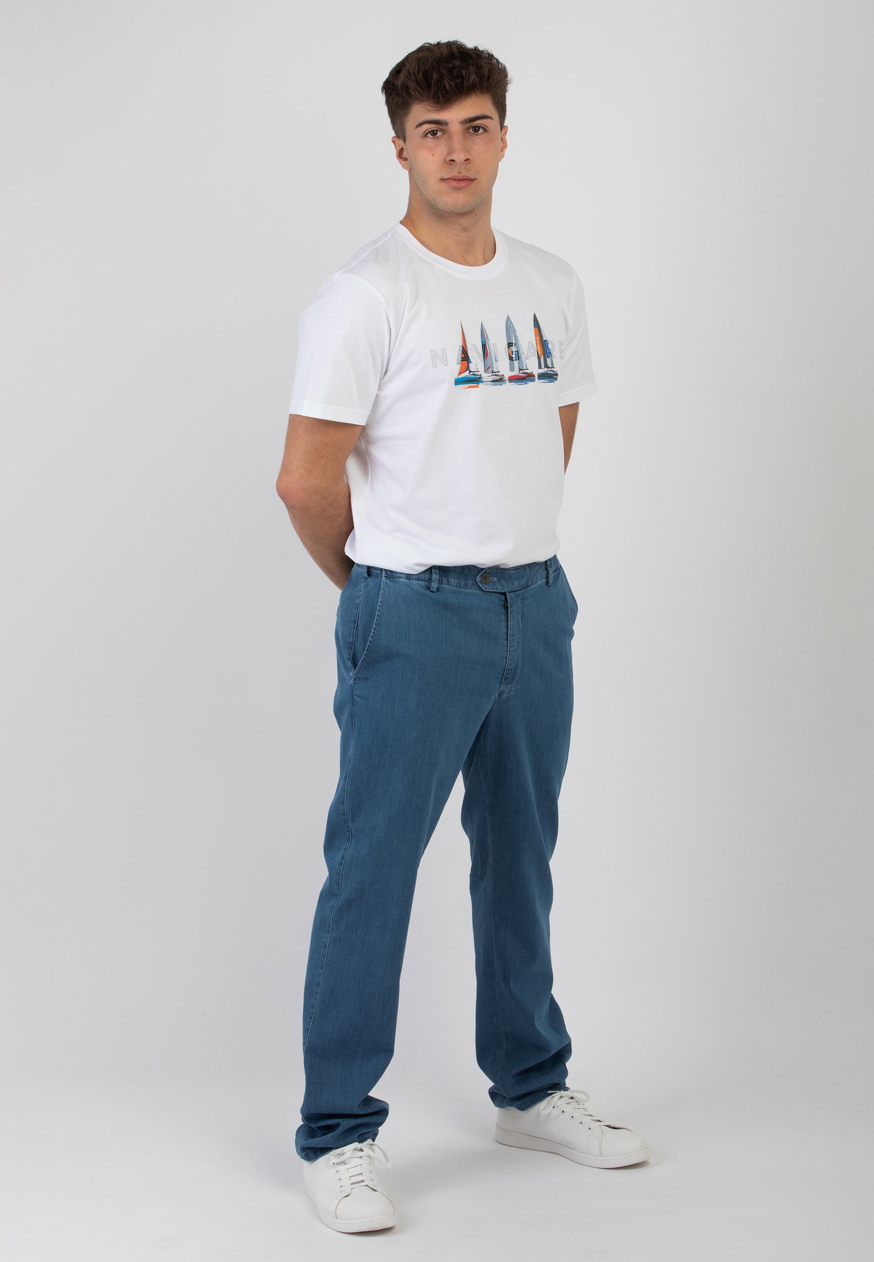 Scopri il pantalone da uomo taglio classico del brand MEYER, realizzato in un elegante tessuto jeans leggero con elastico in vita per un comfort superiore. Il modello è progettato con cotone organico di alta qualità, garantendo una sensazione di morbidezza sulla pelle e un’ottima traspirabilità. Le finiture di pregio e la cura nei dettagli rendono questo pantalone perfetto per ogni occasione, con un equilibrio ideale tra stile e praticità. La scelta del tessuto jeans leggero offre un look moderno e versatile, mentre l’elastico in vita assicura una vestibilità comoda e adattabile. Un capo che coniuga l’eleganza della tradizione con il benessere delle materie prime naturali, per un guardaroba che non rinuncia alla qualità e al comfort. Capo prodotto in Europa. Made in Europe.