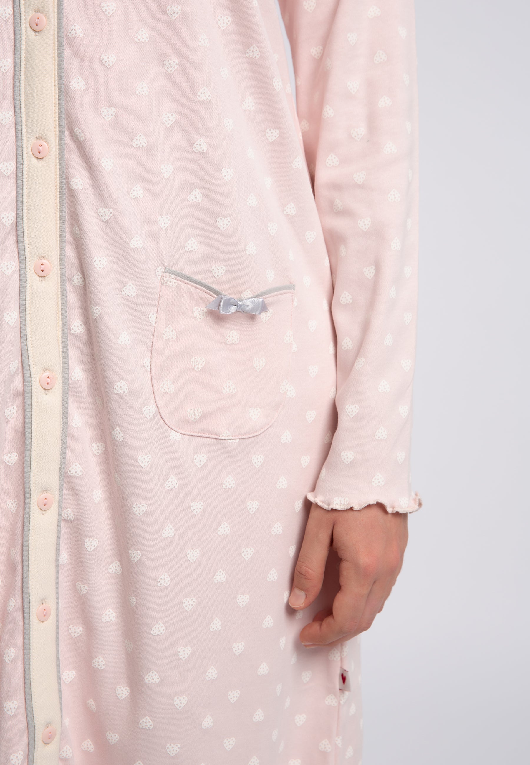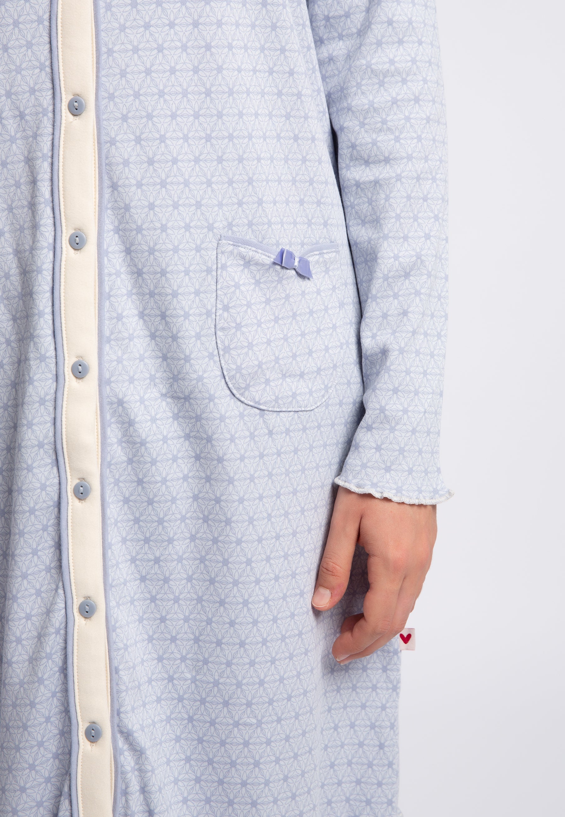 Questa camicia da notte di cotone felpato è davvero adorabile! Realizzata interamente in puro cotone, offre comfort e morbidezza sulla pelle. Il suo design aperto davanti e il bellissimo microdisegno la rendono una scelta elegante e comoda per dormire. Non solo un capo di abbigliamento, ma un investimento per una notte di sonno piacevole.