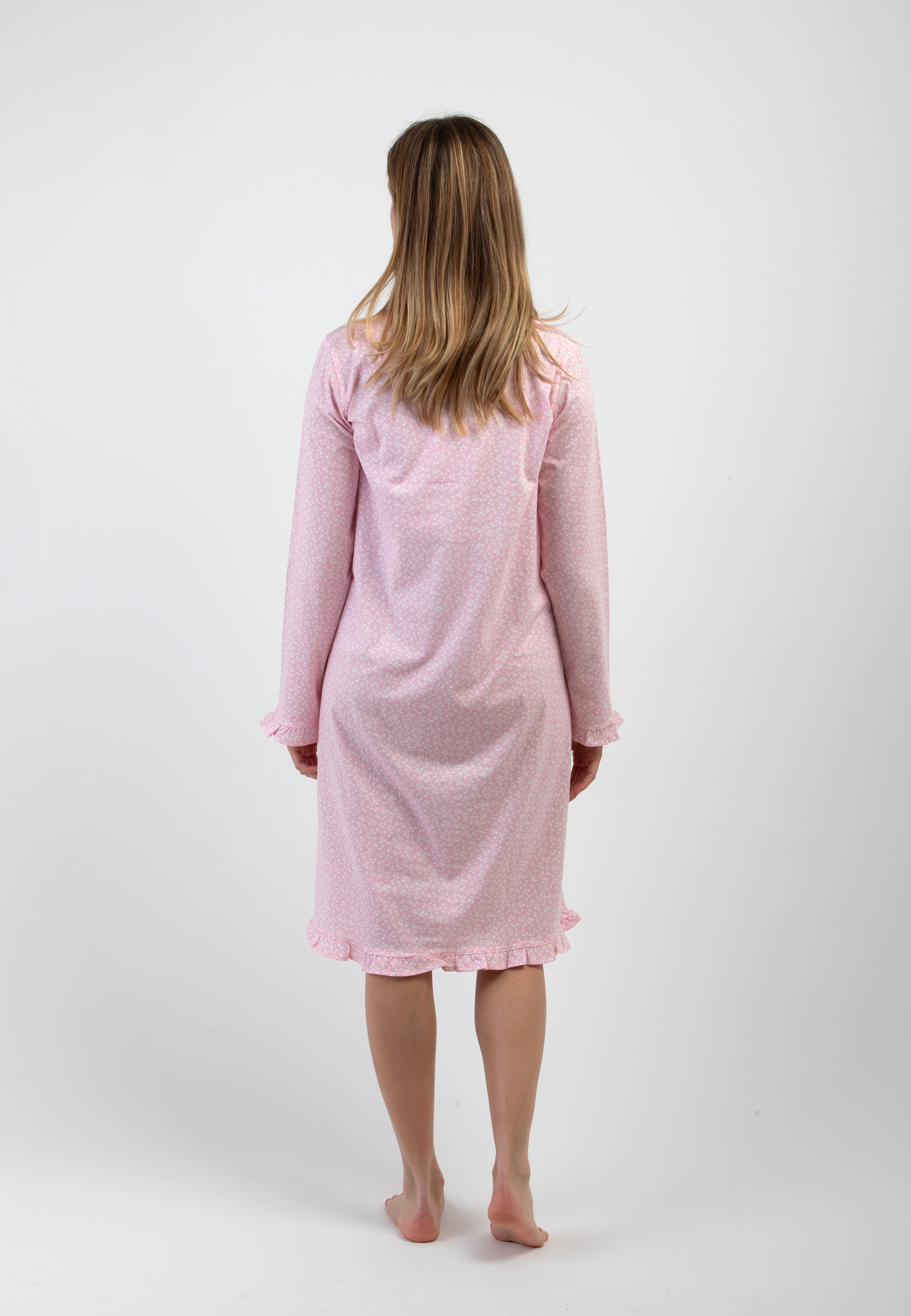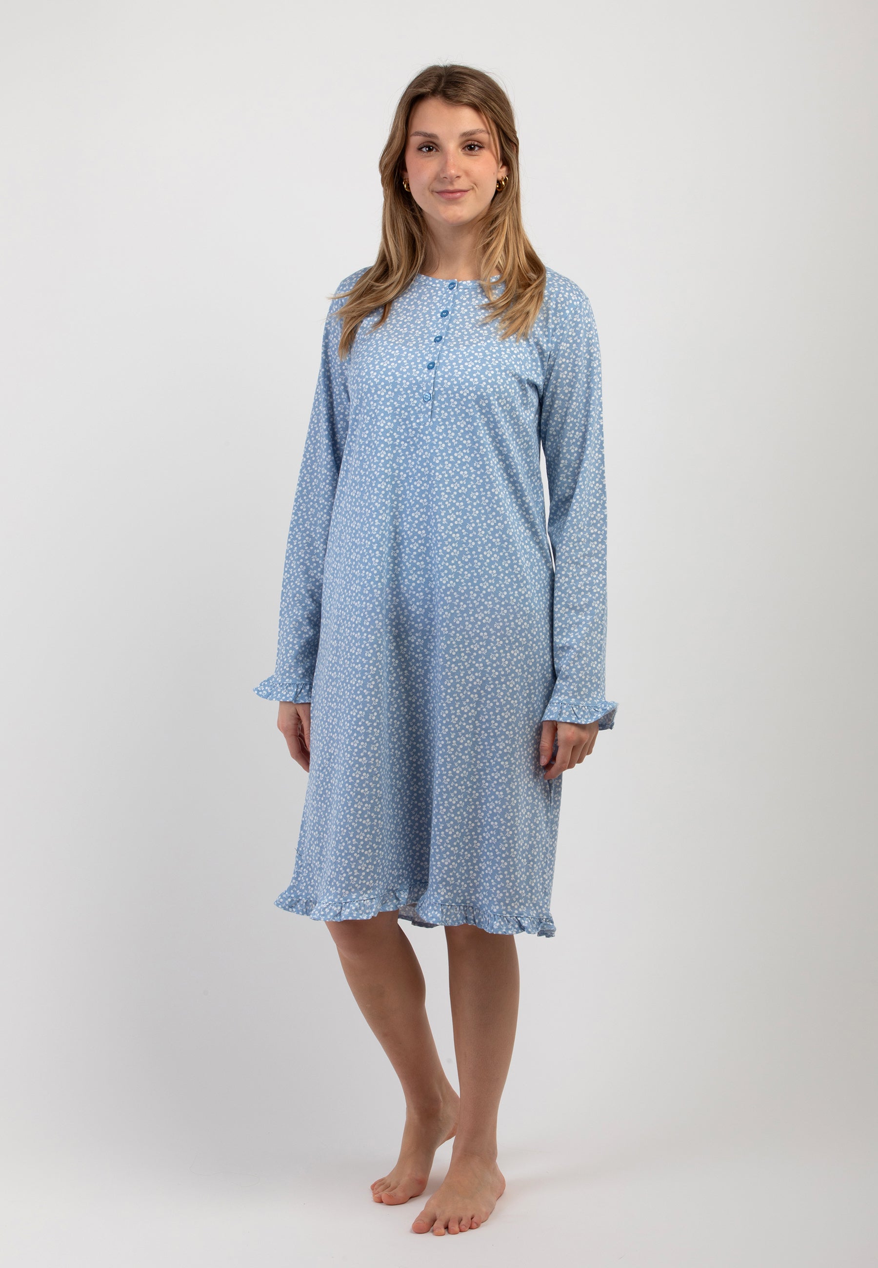 La camicia da notte da donna a manica lunga in jersey di cotone leggero del brand NOI DI NOTTE è la scelta ideale per chi desidera comfort e raffinatezza anche nei momenti di relax. Realizzata in un tessuto morbido e traspirante, avvolge delicatamente la silhouette garantendo una sensazione di benessere per tutta la notte. La microfantasia discreta e delicata aggiunge un tocco di eleganza, rendendo questo capo perfetto per chi ama uno stile raffinato senza rinunciare alla comodità. Ideale per le stagioni più fresche, questa camicia da notte è pensata per accompagnarti con dolcezza nei tuoi momenti di riposo, assicurando leggerezza e vestibilità impeccabile.