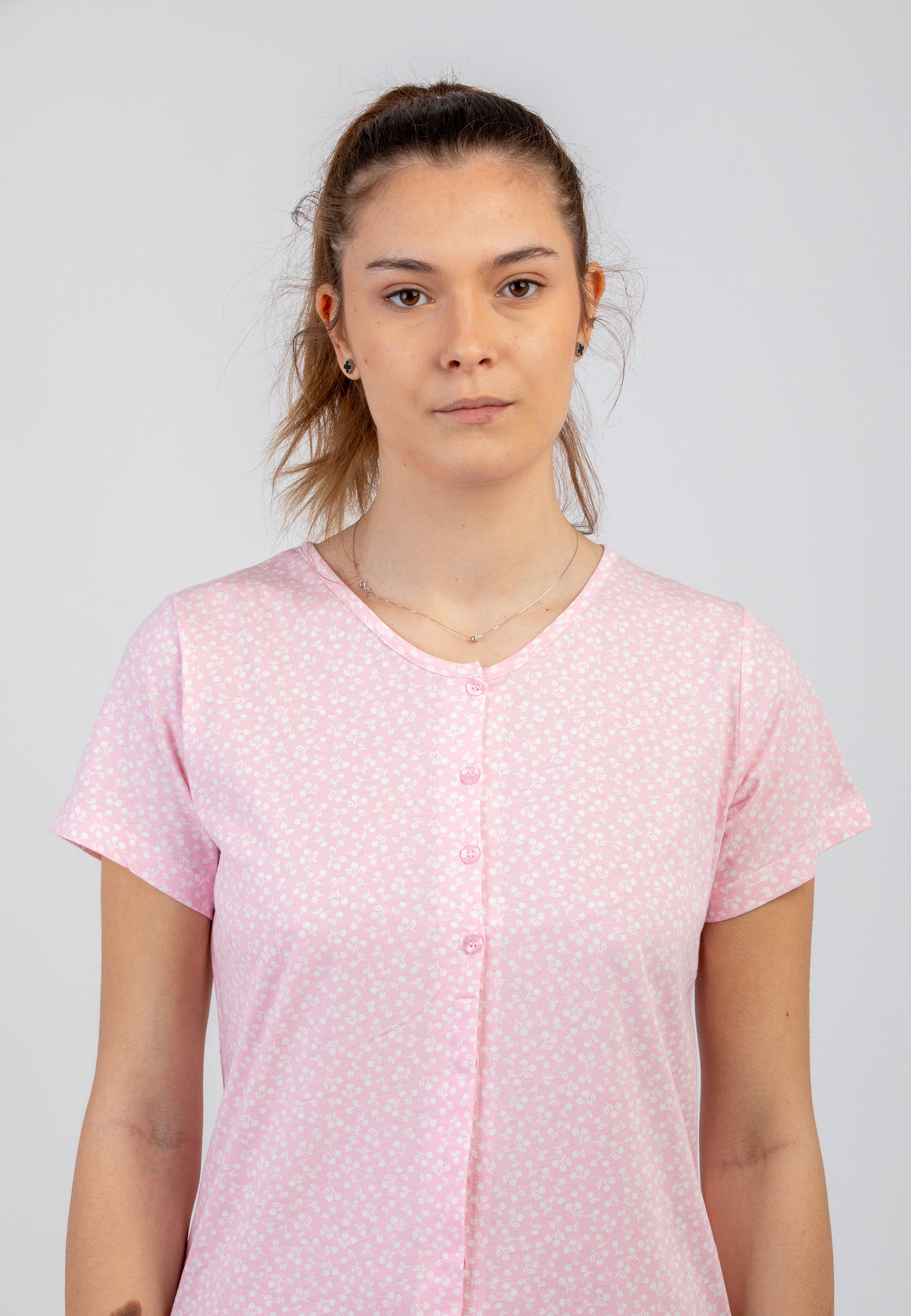 Scopri l'eleganza e il comfort della camicia da notte da donna a mezza manica di NOI DI NOTTE, realizzata in morbido jersey di puro cotone leggero. Il design raffinato, caratterizzato da una delicata microfantasia, esalta uno stile senza tempo, perfetto per chi cerca un mix di praticità e femminilità. L'apertura frontale con bottoni aggiunge un tocco di eleganza e funzionalità, rendendola ideale anche per chi desidera maggiore comodità nei movimenti. Perfetta per le notti più fresche o le stagioni intermedie, questa camicia da notte avvolge la pelle in una sensazione di leggerezza e benessere, esprimendo il gusto unico del brand.
