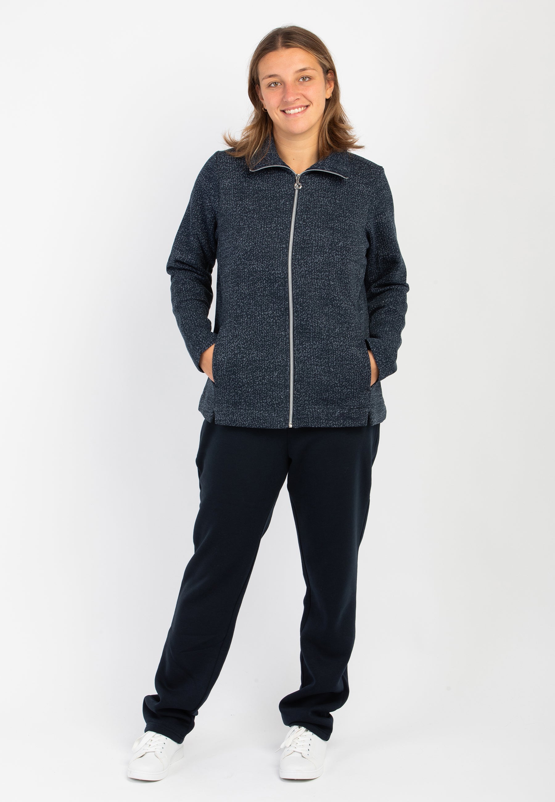 La tuta da donna F.LLI CAMPAGNOLO è un capo ideale per chi cerca comfort e stile nella quotidianità. Realizzata in morbido cotone felpato, assicura una piacevole sensazione di calore e avvolgenza, perfetta per i momenti di relax o il tempo libero. La fantasia a spigata dona un tocco di eleganza sobria e distintiva, mentre la pratica zip frontale facilita la vestibilità e aggiunge un dettaglio sportivo e funzionale. La cura per i materiali e la qualità delle finiture riflettono l’attenzione del brand per il benessere e lo stile femminile, rendendo questa tuta un must-have del guardaroba casual.