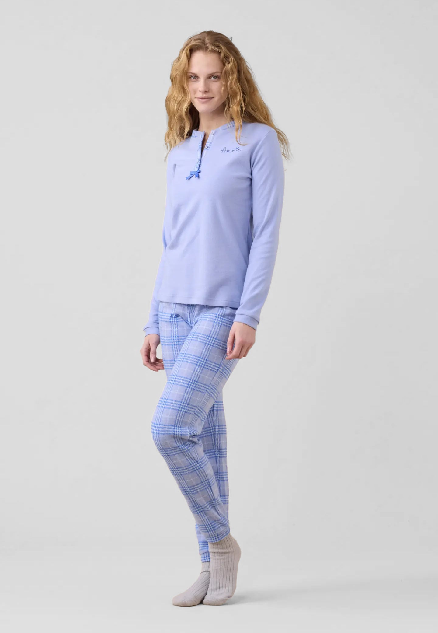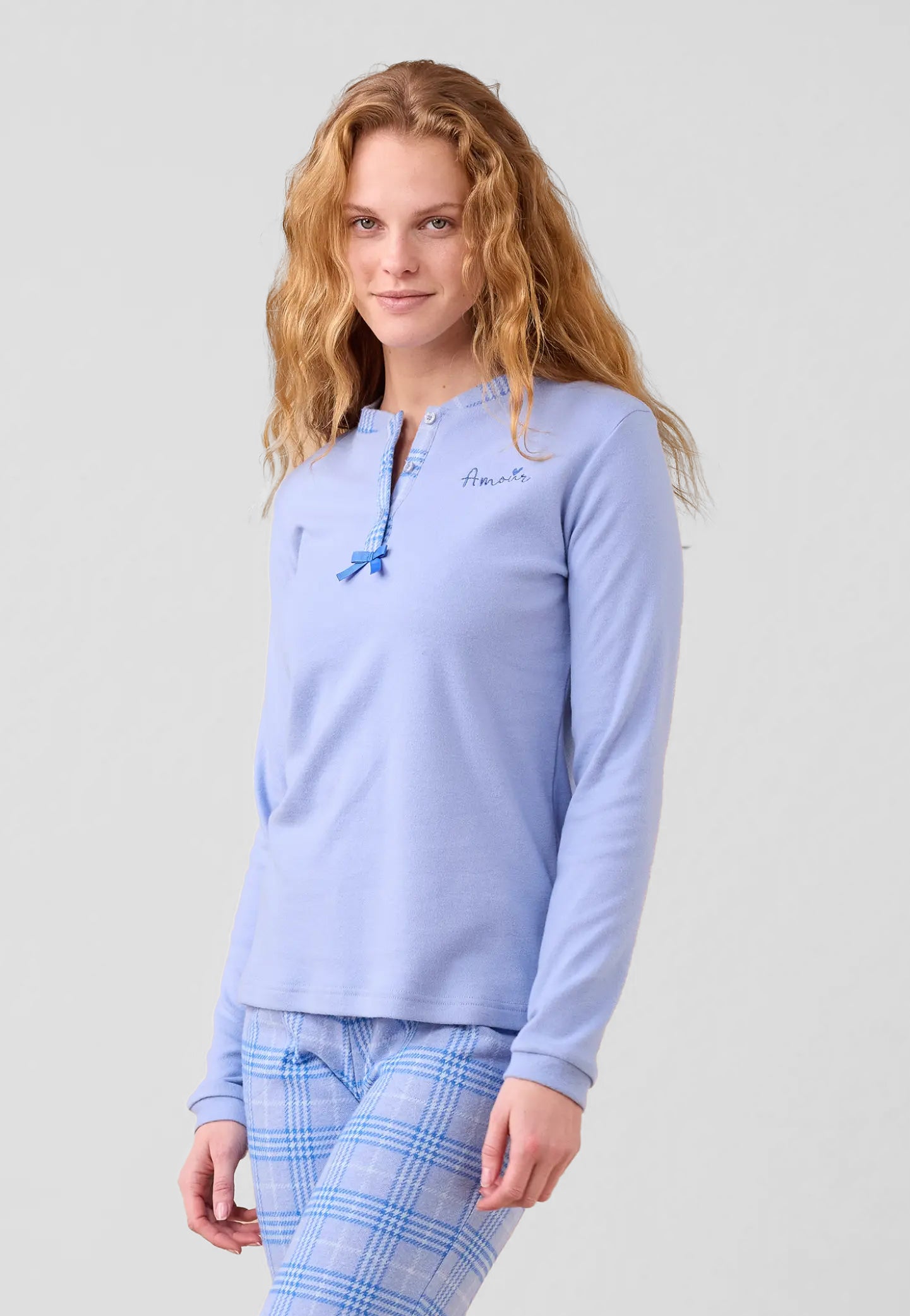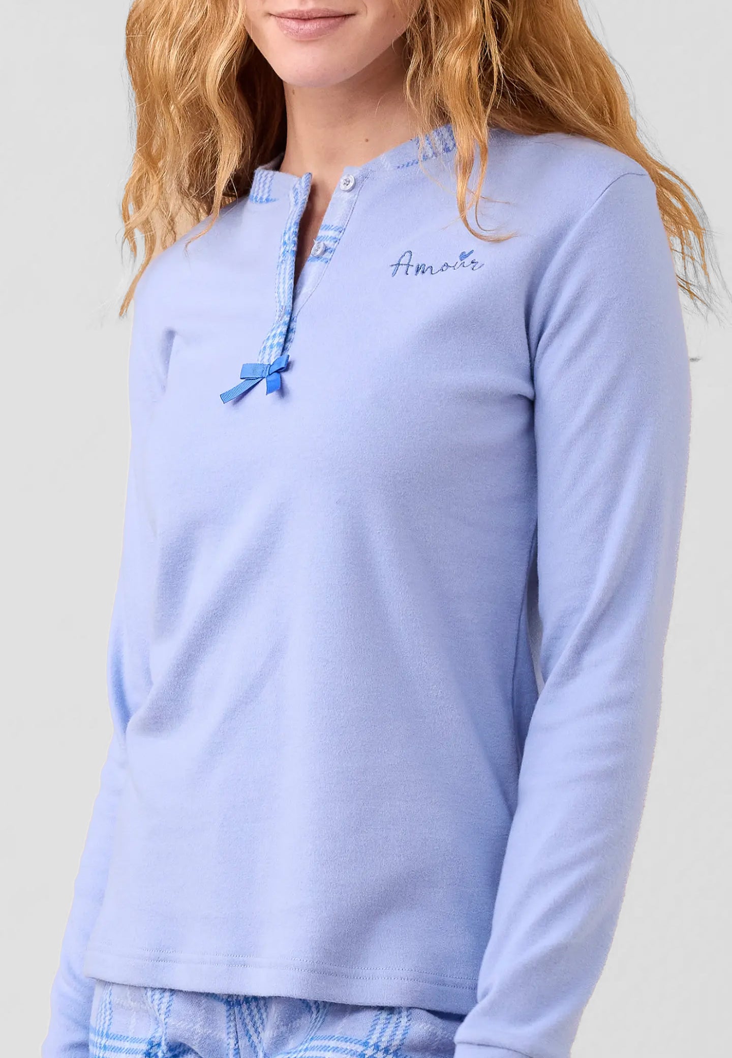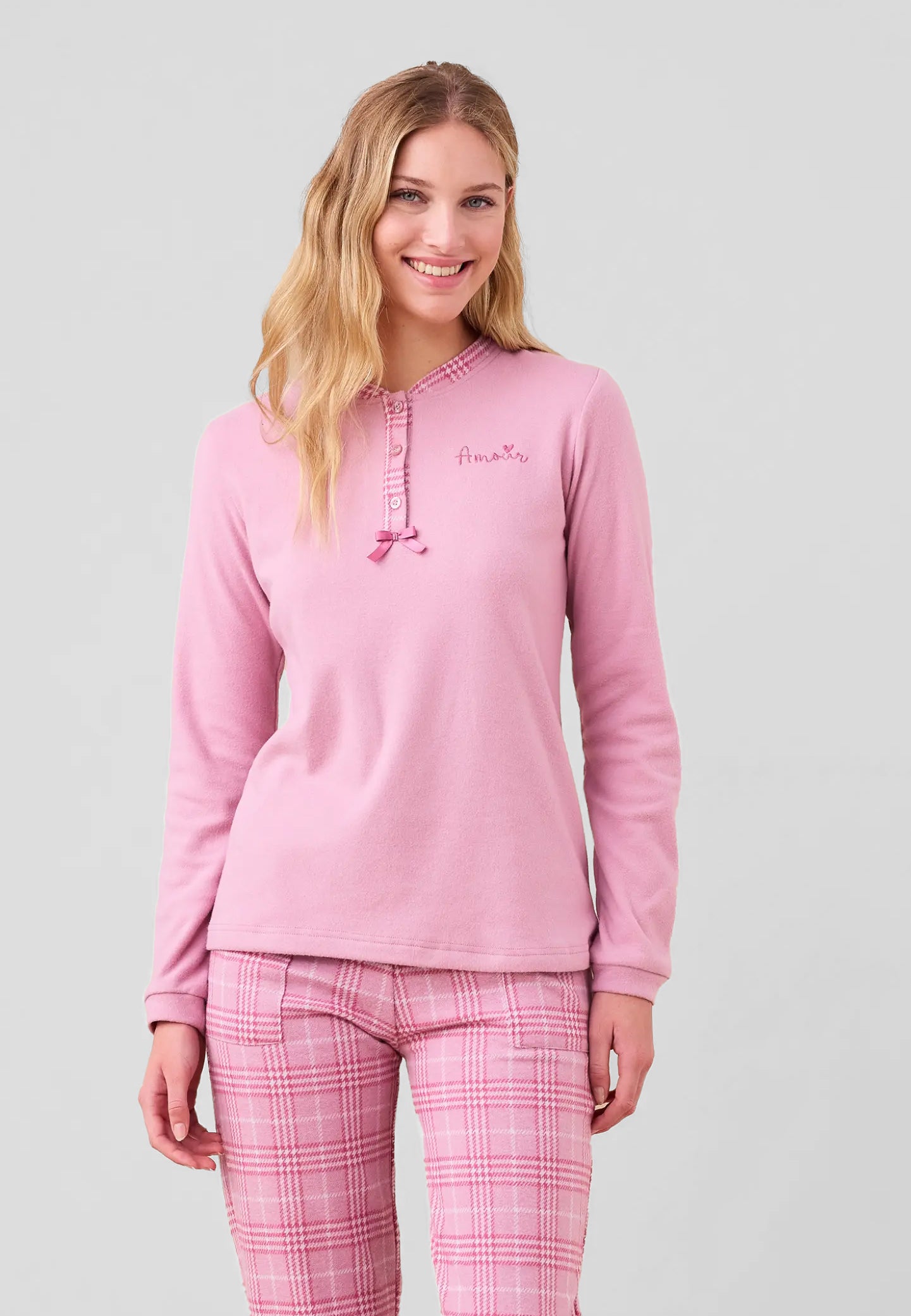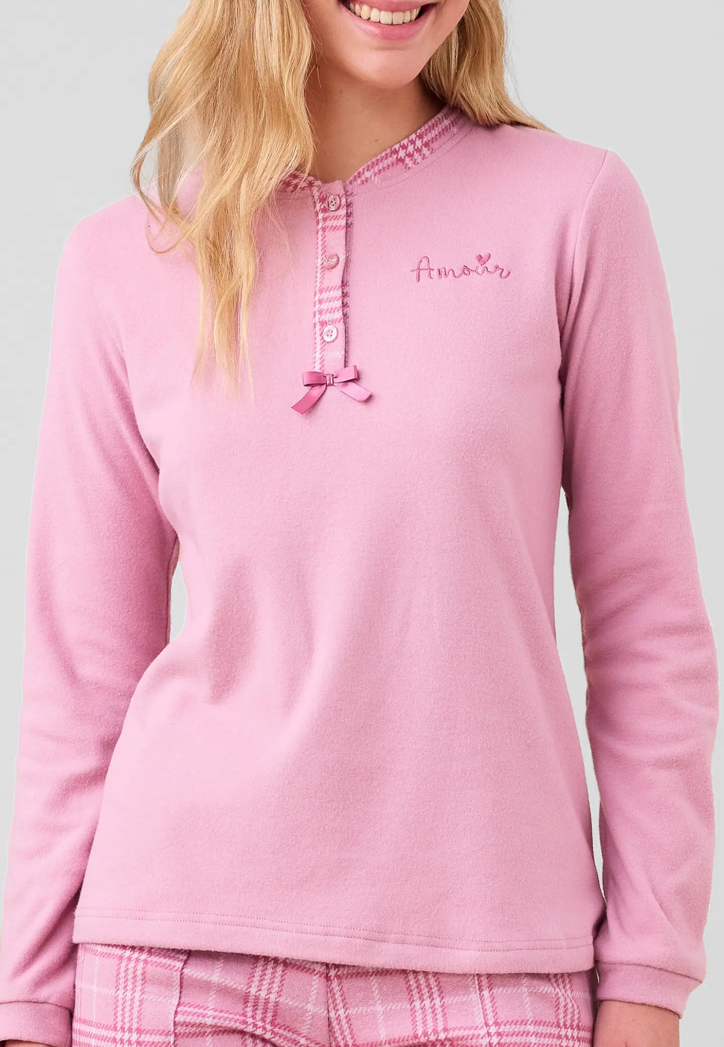 NOI DI NOTTE Pigiama Lungo Donna Cotone e Pile Invernale ART. FA009331