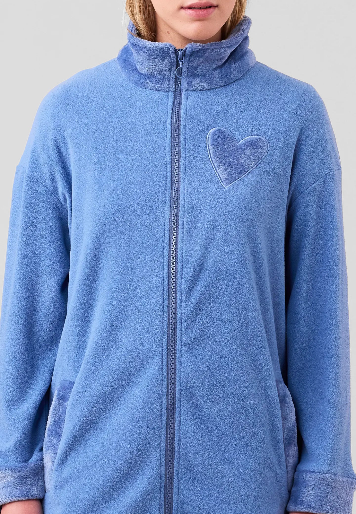 Scopri la vestaglia da donna con apertura a zip in morbido micropile firmata NOI DI NOTTE, il brand italiano specializzato in pigiami e abbigliamento notte che unisce comfort, stile e qualità artigianale. Realizzata in tessuto caldo e soffice, questa vestaglia tinta unita è impreziosita da un delicato cuore applicato sul petto, dettaglio che esprime tutta la cura per i particolari tipica delle collezioni NOI DI NOTTE. Perfetta per i momenti di relax in casa e ideale da indossare sopra il pigiama nelle stagioni più fredde, offre una vestibilità comoda e femminile. La chiusura con zip frontale garantisce praticità e comfort, mentre il design raffinato rende questa vestaglia da donna in micropile un capo elegante e accogliente, perfetto per chi ama sentirsi coccolata anche nei momenti di riposo. Scegli la qualità NOI DI NOTTE e vivi ogni sera con stile e morbidezza.