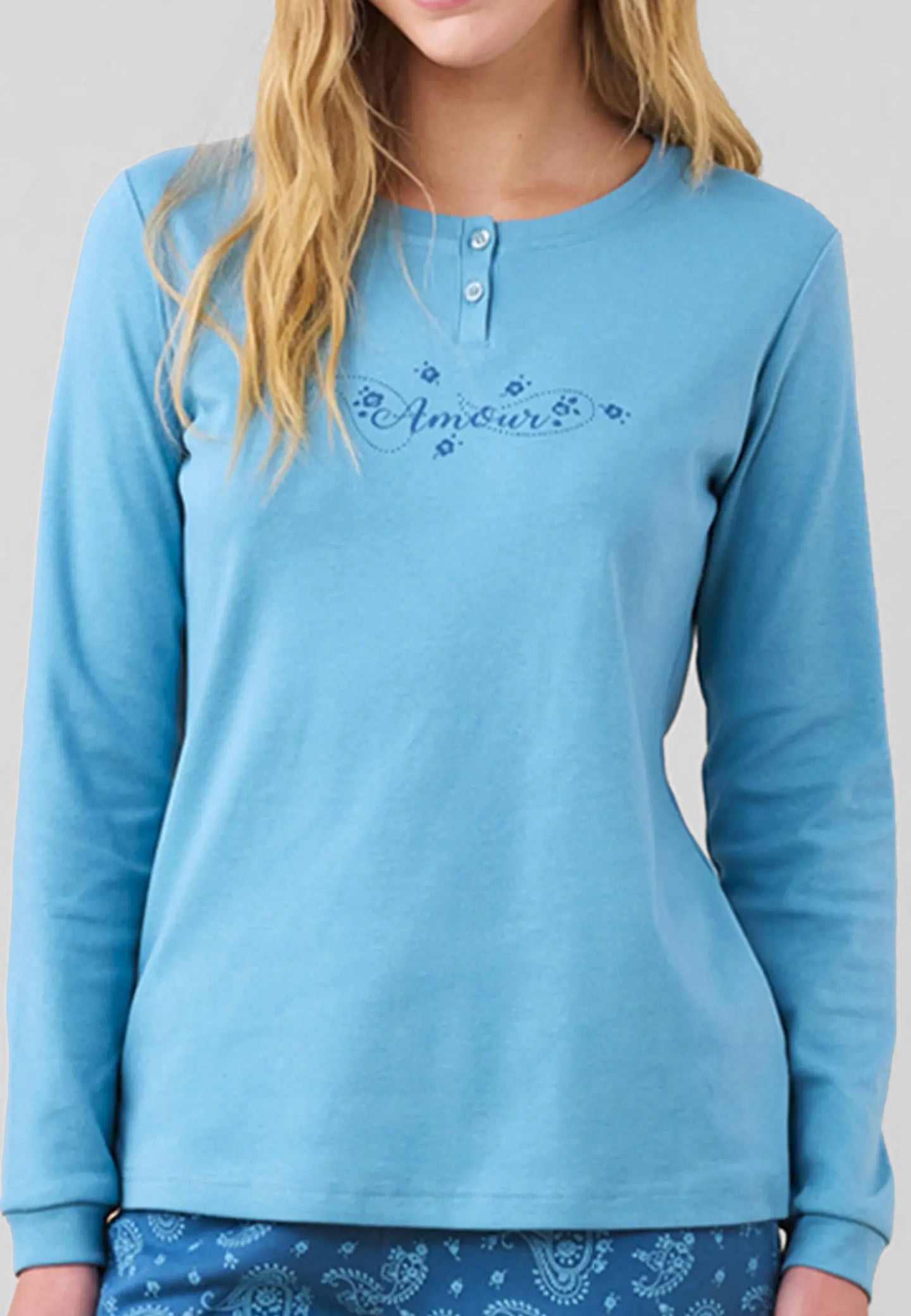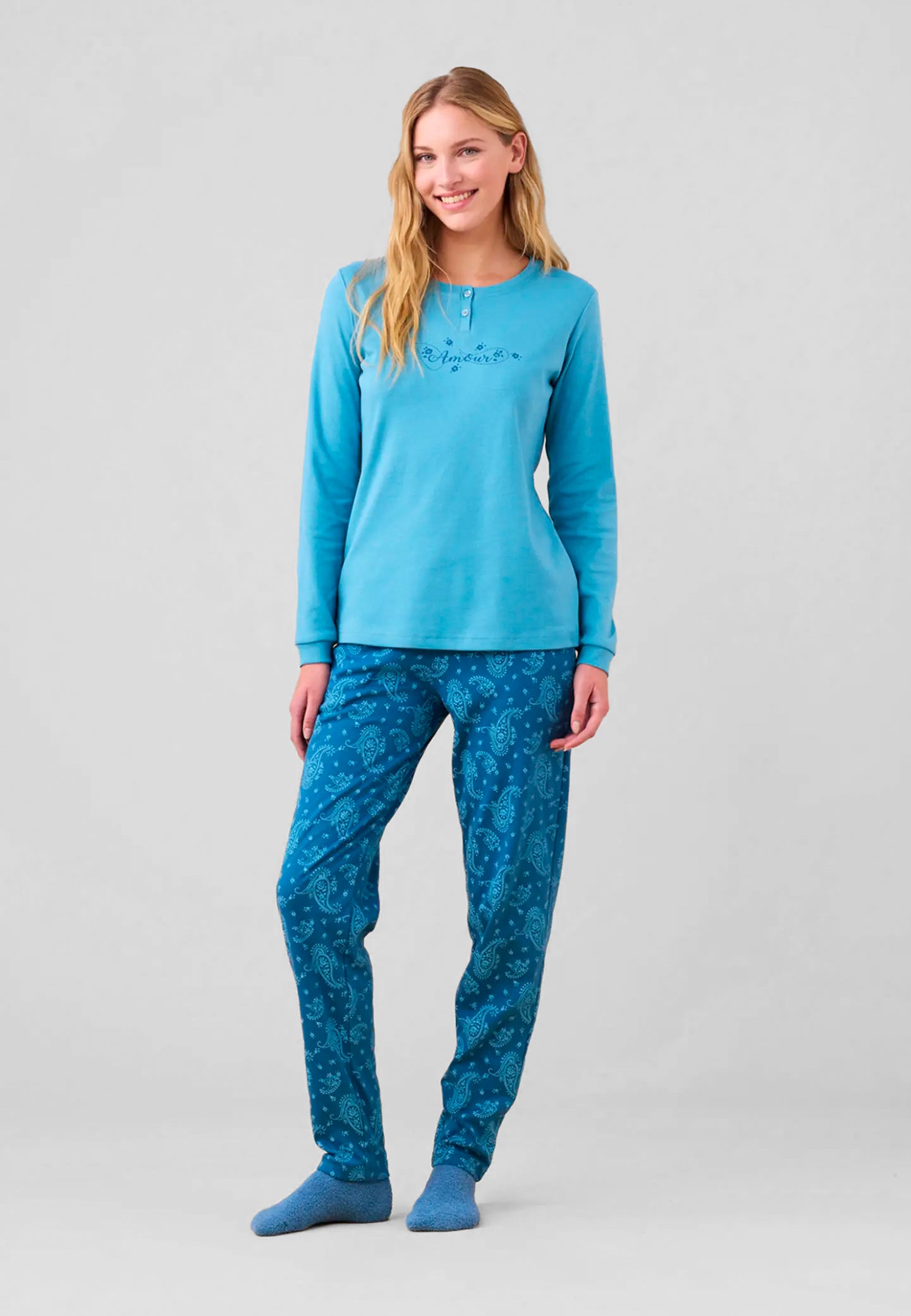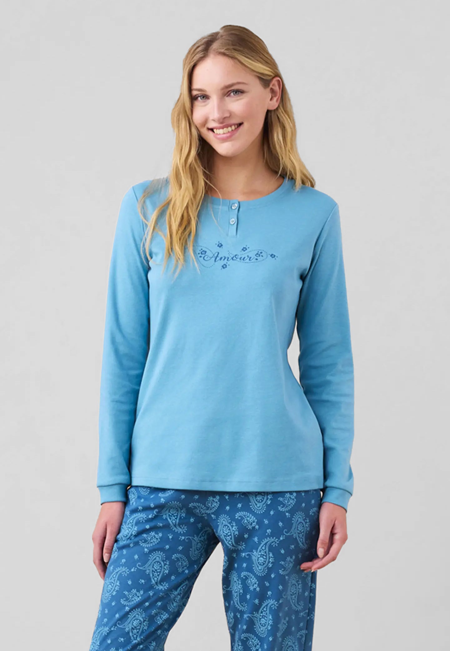 Scopri il pigiama donna manica lunga collo serafino in cotone interlock felpato di NOI DI NOTTE, un capo ideale per affrontare le notti invernali con stile e comfort. Realizzato in morbido cotone caldo, questo pigiama invernale da donna unisce eleganza e praticità grazie alla maglia tinta unita dal taglio raffinato e al pantalone fantasia che aggiunge un tocco di originalità. Il tessuto interlock felpato assicura una piacevole sensazione di morbidezza sulla pelle e una perfetta tenuta del calore, rendendolo la scelta perfetta per chi desidera dormire comoda senza rinunciare alla qualità. Il brand NOI DI NOTTE è sinonimo di eccellenza italiana nell’abbigliamento da notte, con pigiami da donna curati nei dettagli e rifiniti con gusto. Scegli un pigiama NOI DI NOTTE per vivere la stagione fredda con calore, eleganza e comfort assoluto.