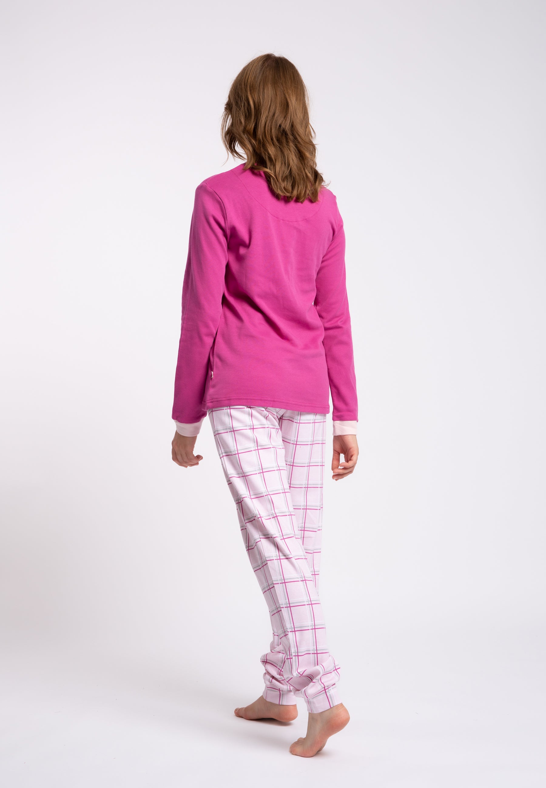 Questo piacevole pigiama è realizzato in morbido cotone felpato per un comfort estremo. Il girocollo unito offre una vestibilità comoda, mentre il pantalone fantasia aggiunge un tocco di personalità al tuo guardaroba notturno. Rimani caldo e coccolato in ogni momento con il Pigiama Interlock di puro cotone felpato di Lovable Donna.