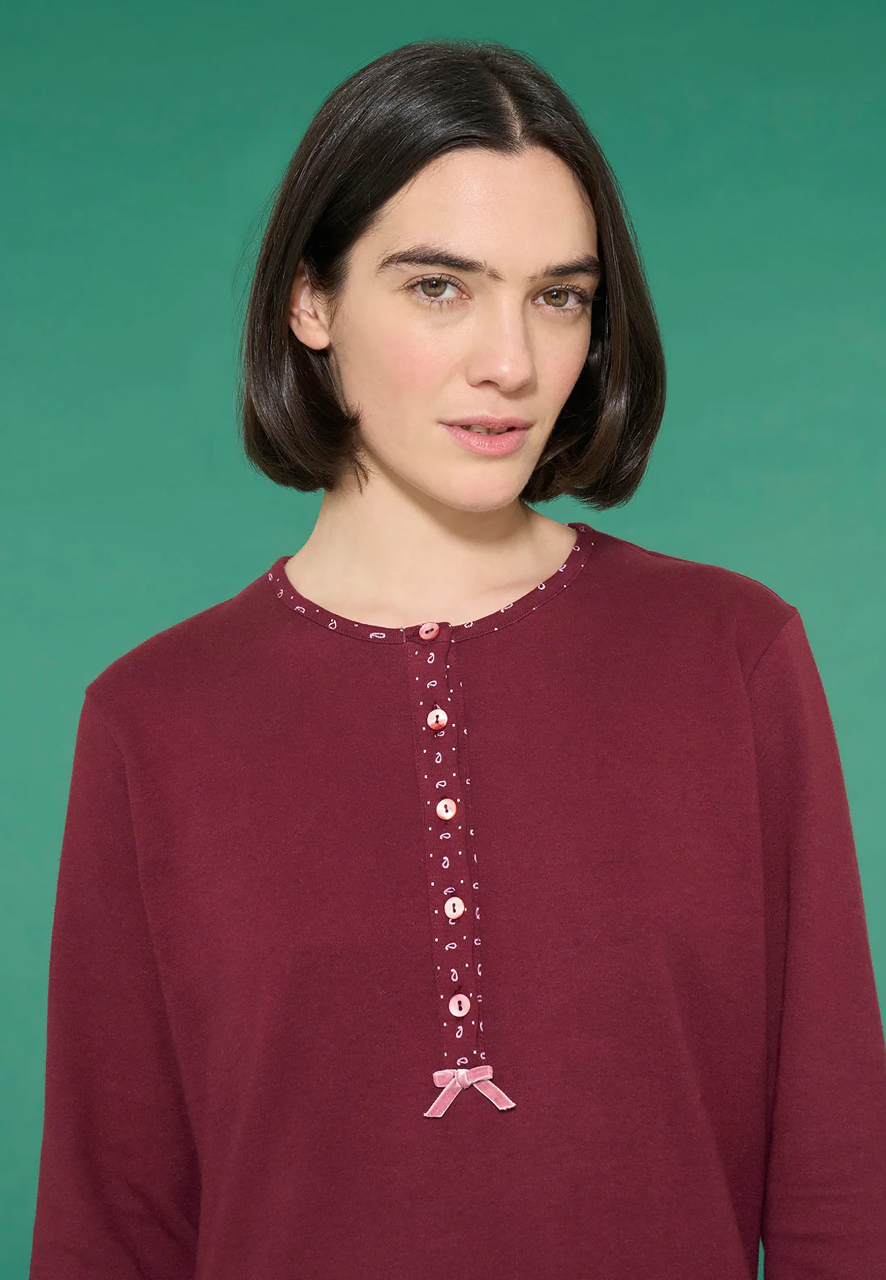 Goditi il comfort e la morbidezza del Pigiama Donna 100% Cotone Felpato Ragno Realizzato in puro cotone felpato, questo pigiama a serafino offre un'esperienza di sonno calda e confortevole. La maglia unita e il pantalone a pois aggiungono un tocco di stile alla tua routine notturna.