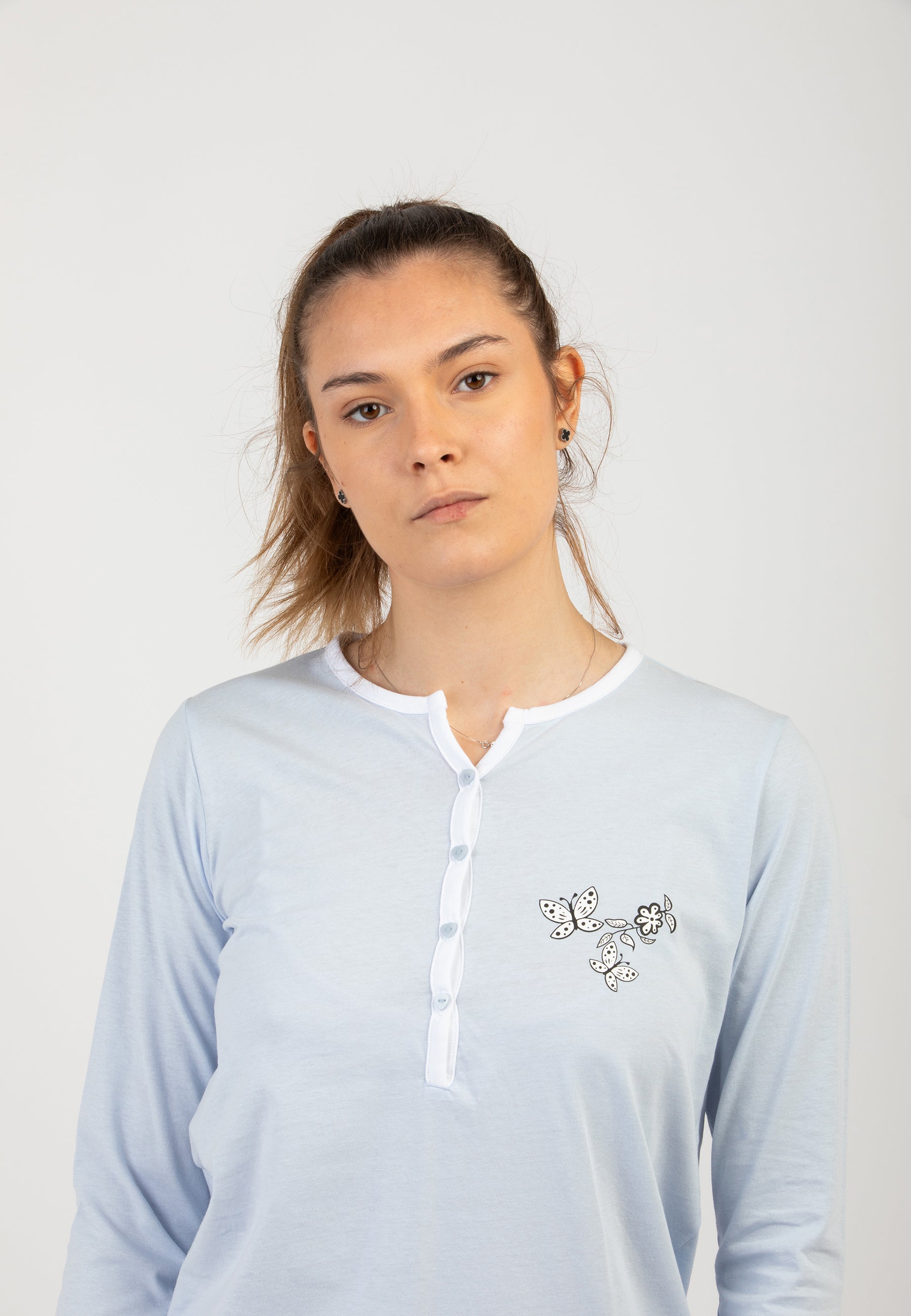 Il pigiama donna lungo LOVABLE in jersey di cotone serafino è la scelta ideale per chi cerca comfort e stile. Realizzato in morbido cotone, questo pigiama offre una sensazione piacevole sulla pelle, perfetto per le notti più fresche. Il top serafino con bottoni e il pantalone con coulisse garantiscono una vestibilità perfetta, adattandosi a ogni movimento con eleganza e praticità. La combinazione di design semplice e materiali di alta qualità rende questo pigiama un must-have per il tuo guardaroba notturno. Perfetto per momenti di relax, è un capo versatile che unisce funzionalità e raffinatezza, caratterizzando ogni momento di riposo con un tocco di classe.