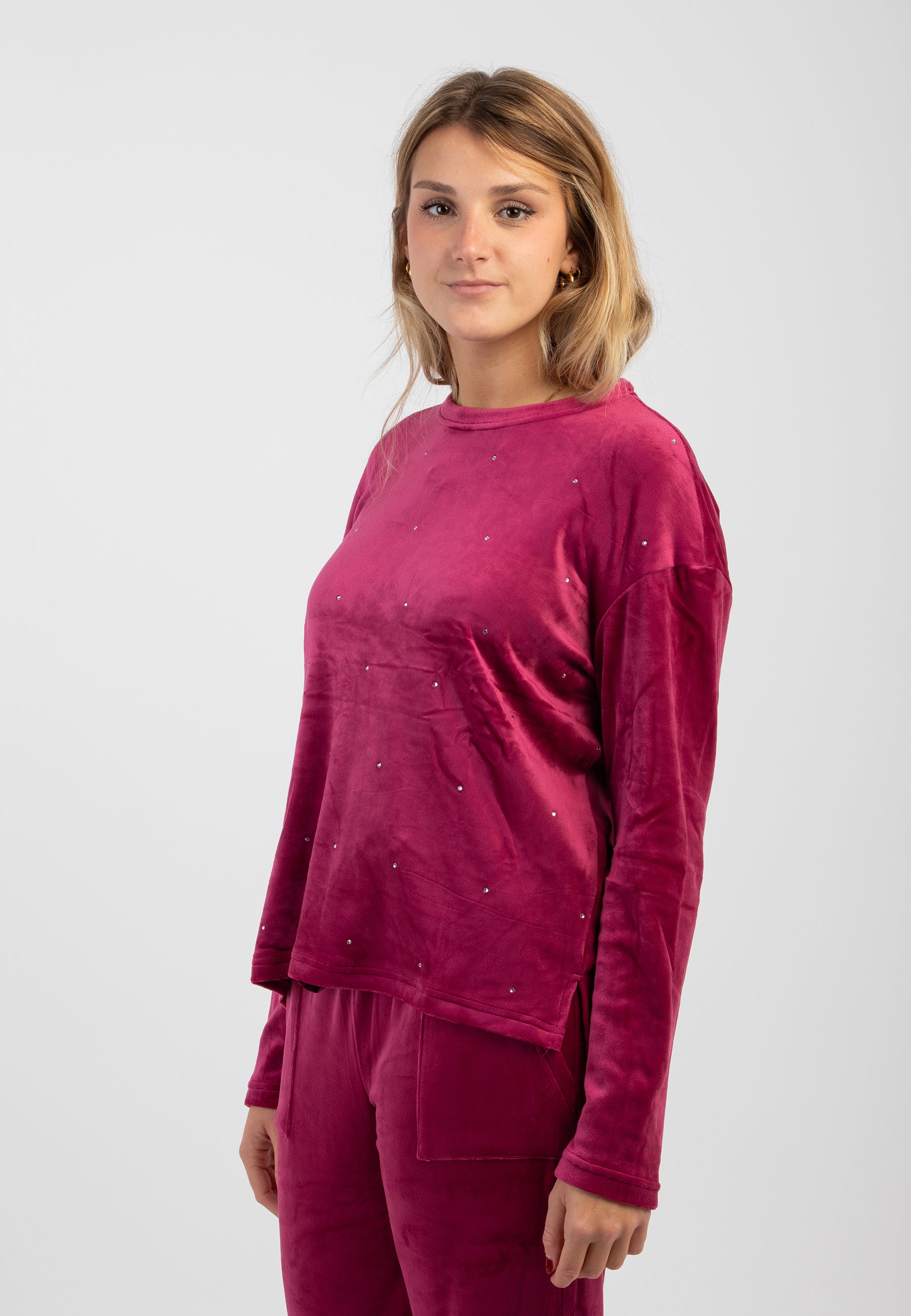 Questo elegante e confortevole pigiama da donna di Noi di Notte in ciniglia felpata è perfetto per una notte di riposo. Realizzato con morbida maglia e con dettagli di decorazioni, ti farà sentire comoda e alla moda. Ideale anche come regalo per le donne speciali della tua vita.