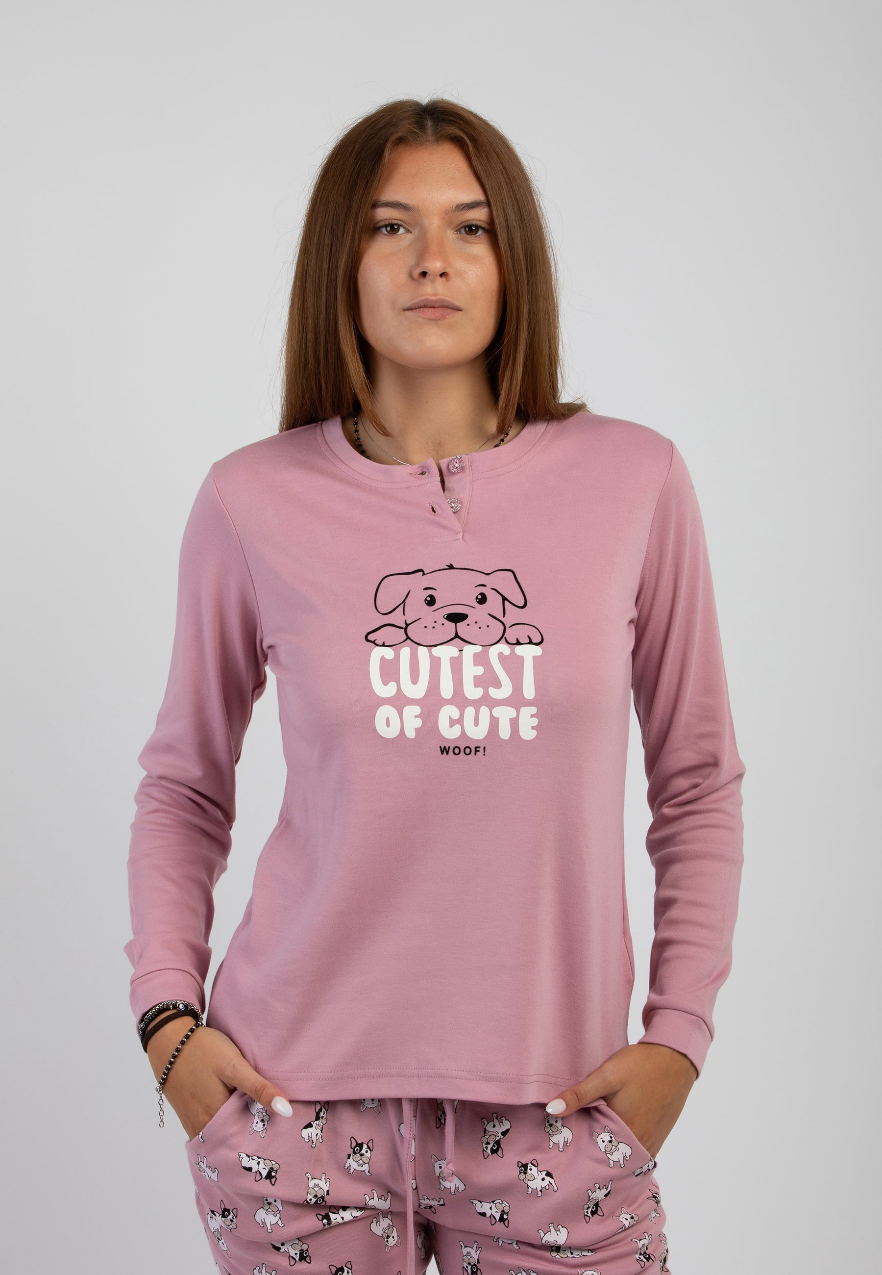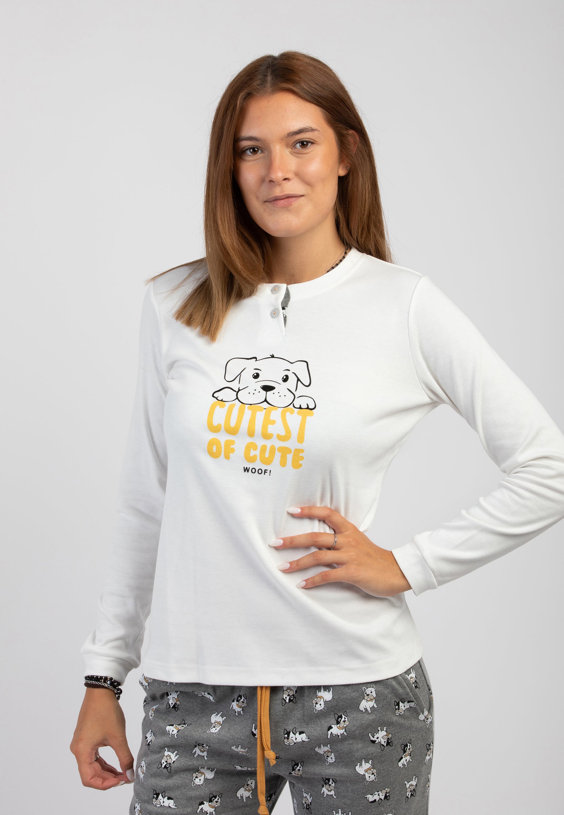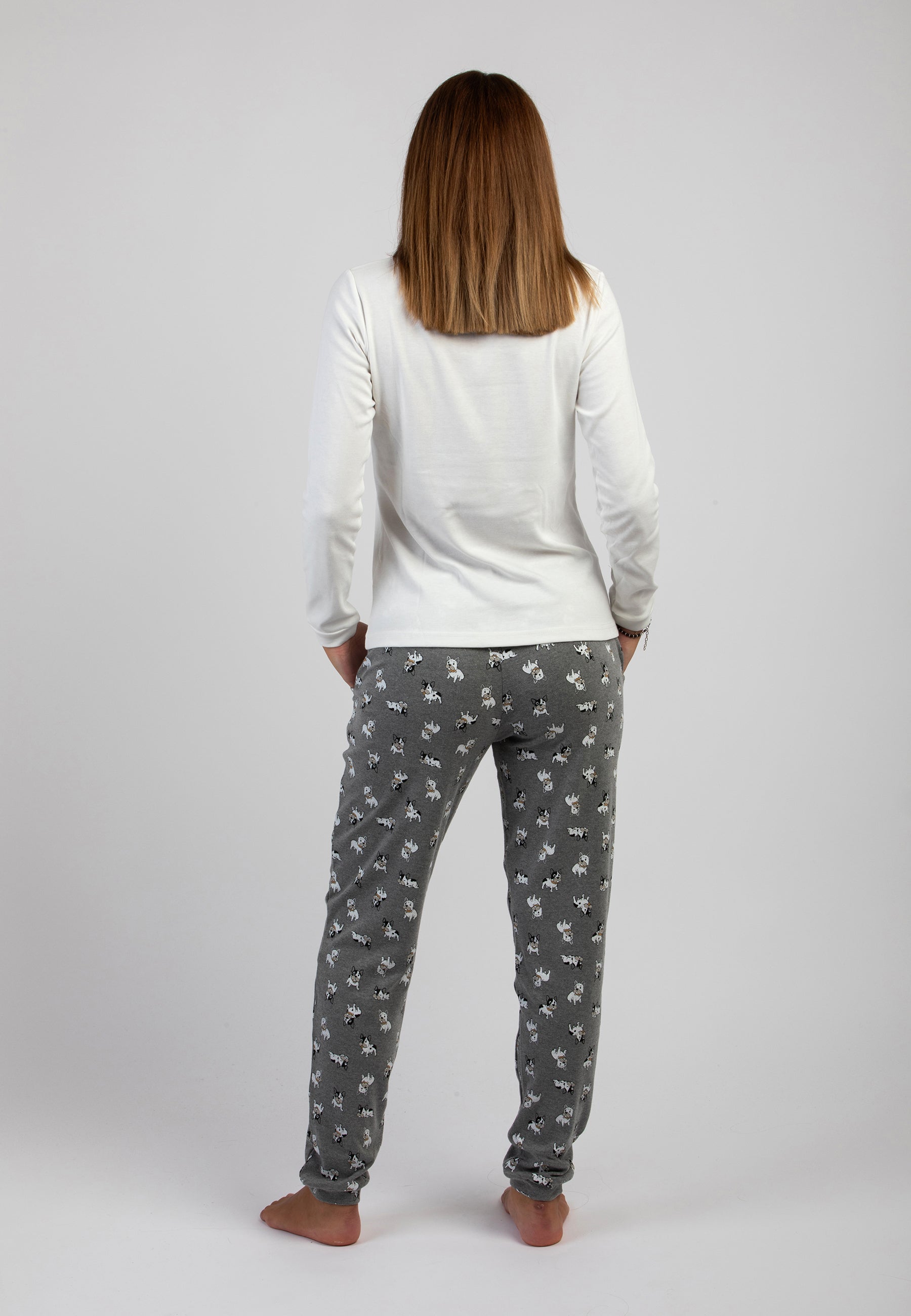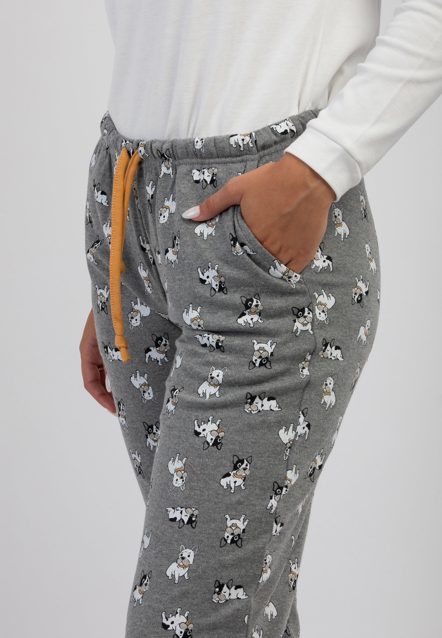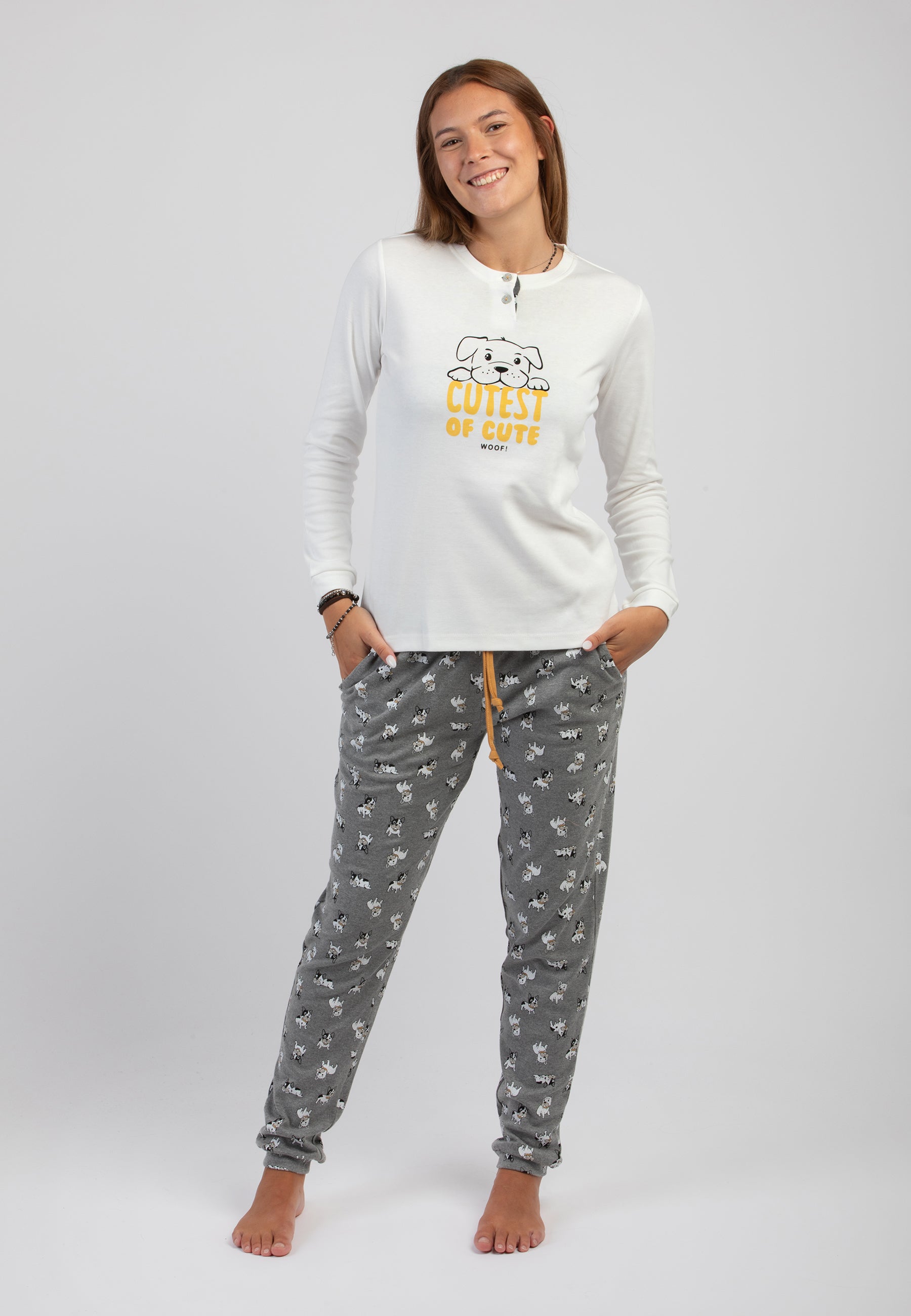 Realizzato in morbido cotone felpato interlock, questo pigiama da donna vanta una fantasia originale con cagnolini. I pantaloni comodi e la vestibilità perfetta rendono questo pigiama ideale per una serata di relax a casa. Addormentati con stile e comfort con questo pigiama felpato.