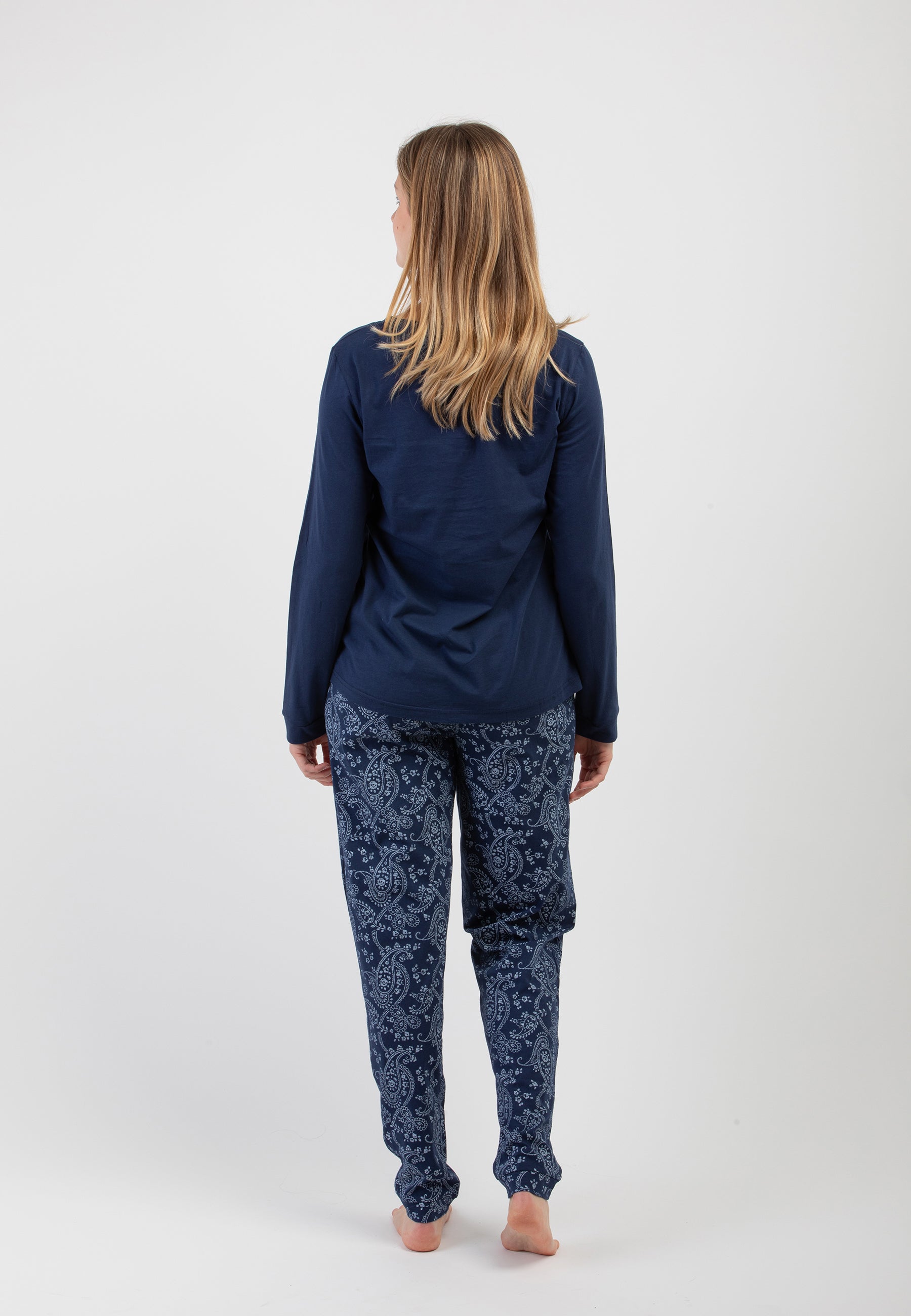 Il pigiama da donna a manica lunga in jersey di cotone leggero del brand NOI DI NOTTE è la scelta ideale per chi desidera comfort e stile anche nei momenti di relax. La maglia in tinta unita si abbina perfettamente al pantalone in fantasia, creando un equilibrio raffinato tra semplicità ed eleganza. Il tessuto morbido e traspirante avvolge delicatamente la pelle, offrendo una sensazione di leggerezza perfetta per il riposo notturno. Con un design curato nei dettagli e una vestibilità comoda, questo pigiama unisce praticità e femminilità, rendendolo un must-have per chi cerca un look sofisticato anche a casa.