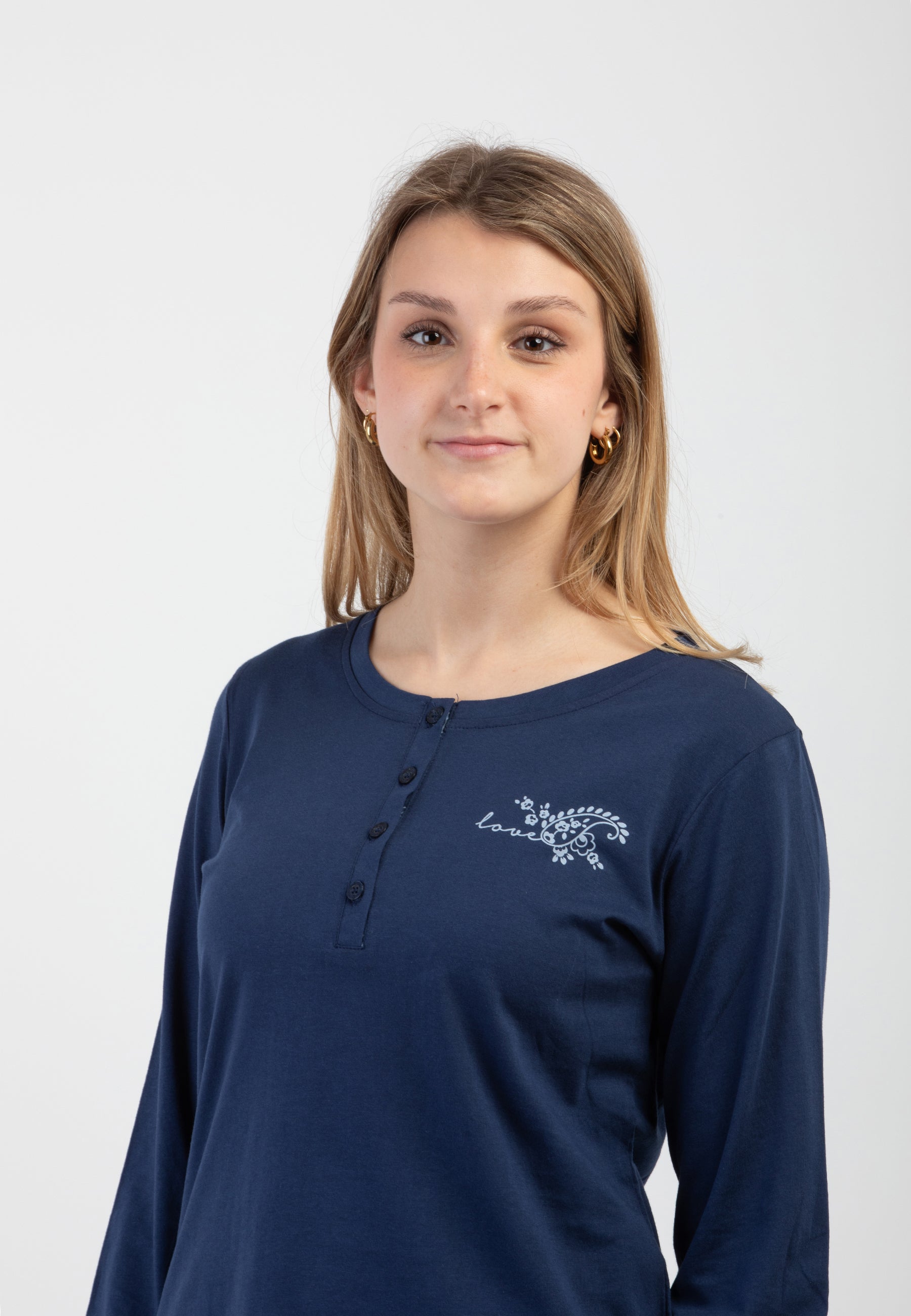 Pigiama Donna Manica Lunga 100% Cotone Leggero NOI DI NOTTE FA009014