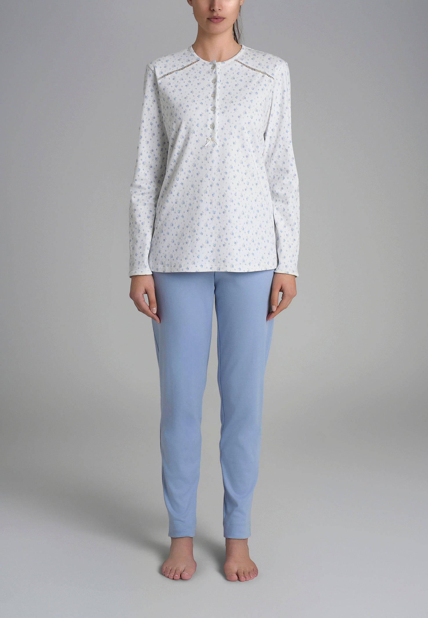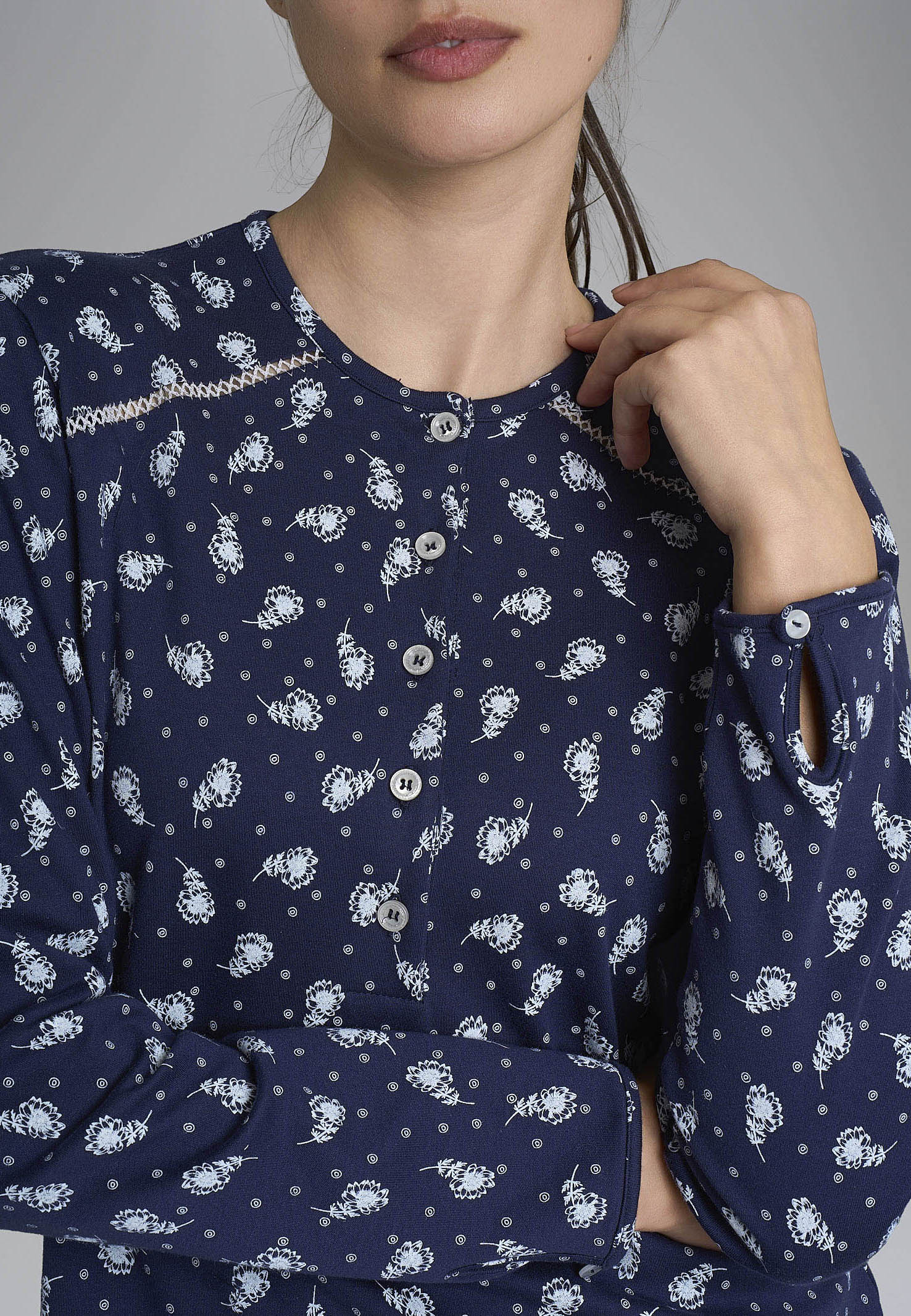 Il pigiama donna a manica lunga RAGNO in caldo cotone è la scelta ideale per chi desidera comfort e stile nelle serate più fresche. Realizzato con tessuto naturale e traspirante, assicura una piacevole sensazione di morbidezza sulla pelle e mantiene il corpo avvolto da un calore leggero e costante. Il modello serafino con scollo a bottoncini dona un tocco di praticità e raffinatezza, mentre la delicata fantasia a fiorellini aggiunge un dettaglio femminile e romantico che rende questo capo perfetto per sentirsi curate anche nei momenti di relax. Firmato RAGNO, sinonimo di qualità e tradizione nell’abbigliamento intimo e homewear, questo pigiama unisce estetica e funzionalità, diventando un must-have per chi cerca un alleato di benessere e stile per la stagione più fredda.