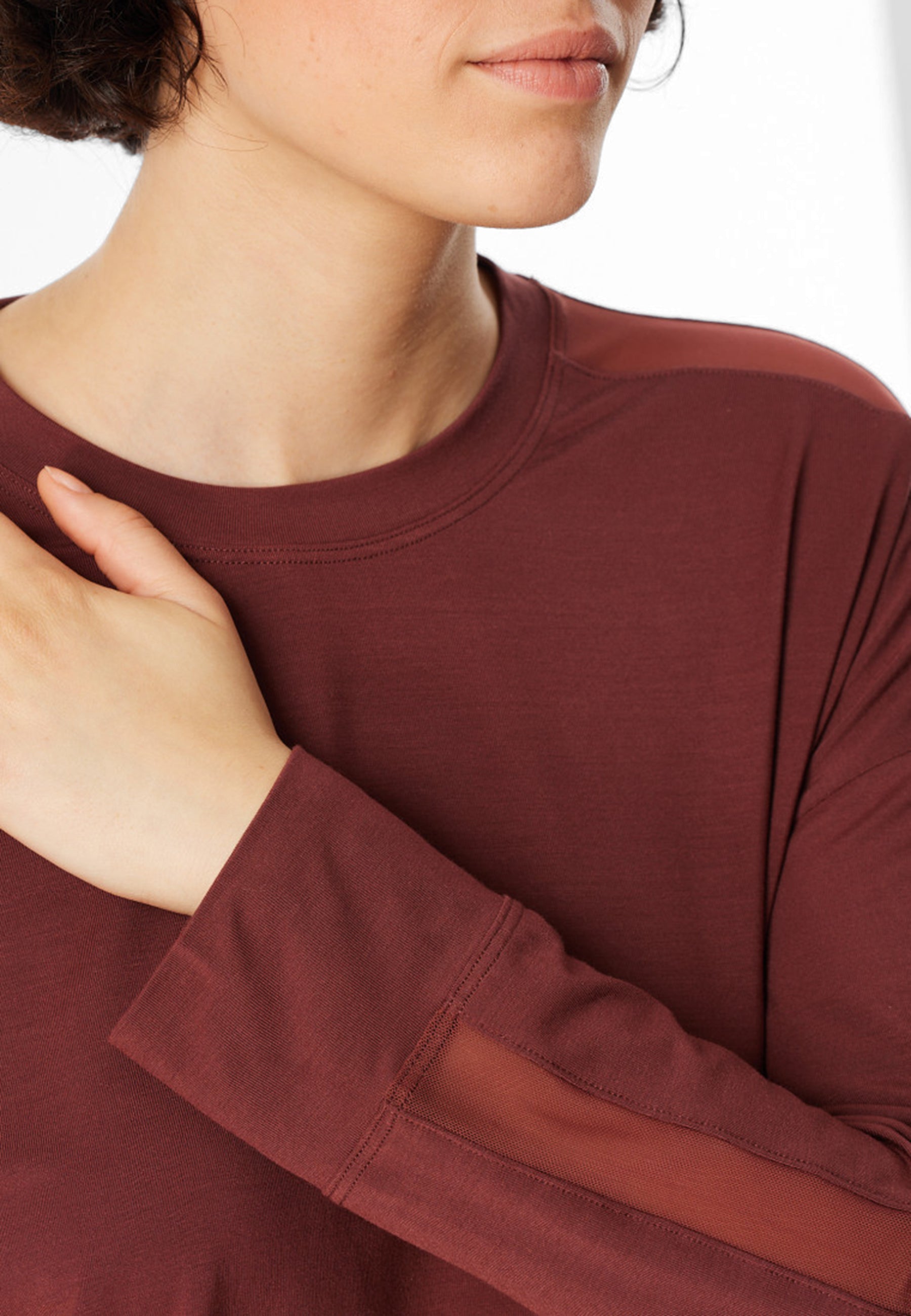 Scopri la maglia donna a manica lunga SCHIESSER della linea Mix & Relax, realizzata in morbida maglina di modal per un comfort impareggiabile e una vestibilità naturale. Il raffinato inserto in tulle sulle maniche aggiunge un tocco di eleganza e femminilità, rendendola perfetta sia per il relax in casa sia per un look casual e sofisticato. Ideale da abbinare al pantalone coordinato della collezione Mix & Relax, questa maglia firmata SCHIESSER unisce stile, qualità e benessere, confermando l’eccellenza del brand tedesco nell’abbigliamento intimo e nei pigiami da donna di alta qualità. Lasciati avvolgere dalla morbidezza del modal e scopri il piacere del vero comfort con SCHIESSER.