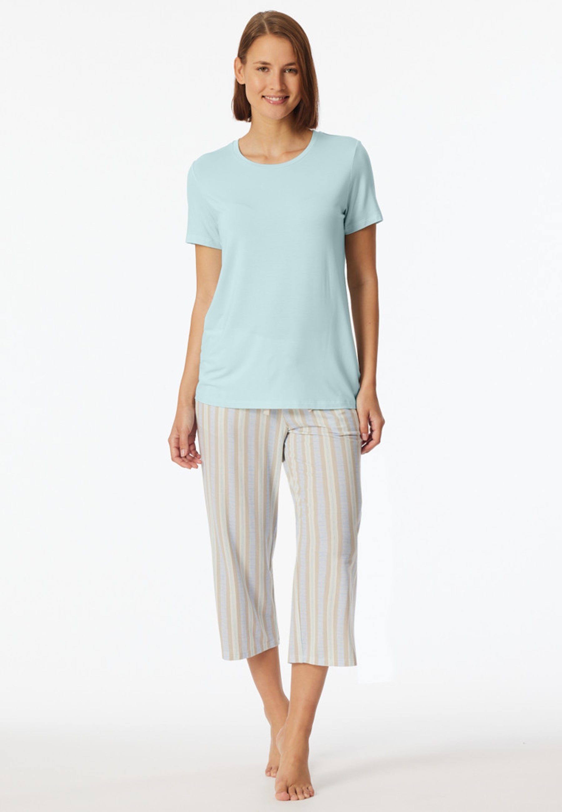 Scopri l'eleganza e il comfort della T-shirt da donna mezza manica in modal firmata SCHIESSER. Realizzata con materiali di alta qualità, questa maglietta è morbida e traspirante, garantendo un fit perfetto e una sensazione di freschezza tutto il giorno. La tinta unita e il design semplice la rendono facilmente abbinabile ai pantaloni pigiama della collezione Mix & Relax, creando un completo da notte elegante e confortevole. Ideale per chi cerca un look raffinato anche durante il riposo, senza rinunciare al massimo del comfort. Capo prodotto in Europa. Made in Europe.