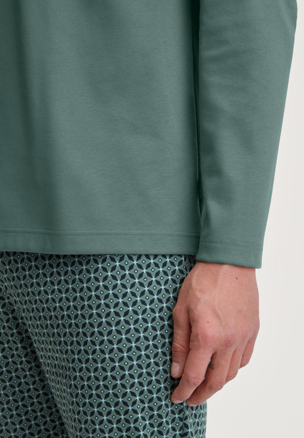 Il pigiama da uomo CALIDA è l’emblema della qualità e del comfort. Realizzato in morbido cotone interlock felpato, offre una piacevole sensazione di calore ideale per le stagioni più fredde. La maglia a manica lunga presenta un design essenziale con girocollo e tinta unita, perfetta per uno stile sobrio e raffinato. Il pantalone, in contrasto, è decorato con una fantasia elegante che aggiunge un tocco distintivo all’insieme. Grazie alla cura nei dettagli e alla qualità dei materiali, questo pigiama garantisce vestibilità impeccabile e lunga durata, ideale per chi cerca relax e benessere senza rinunciare allo stile.