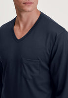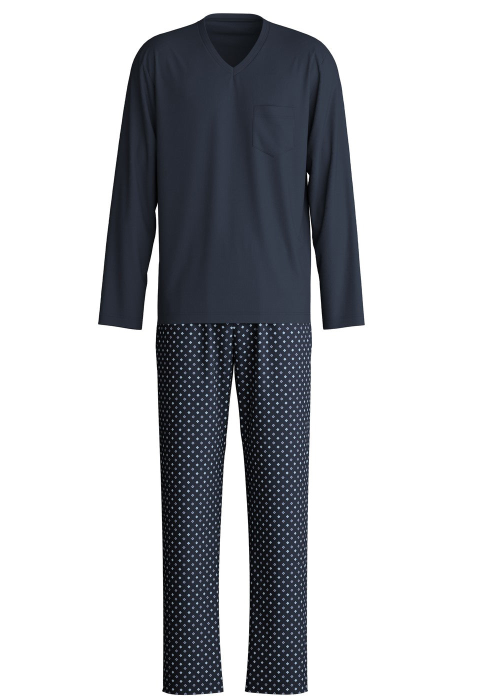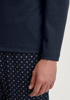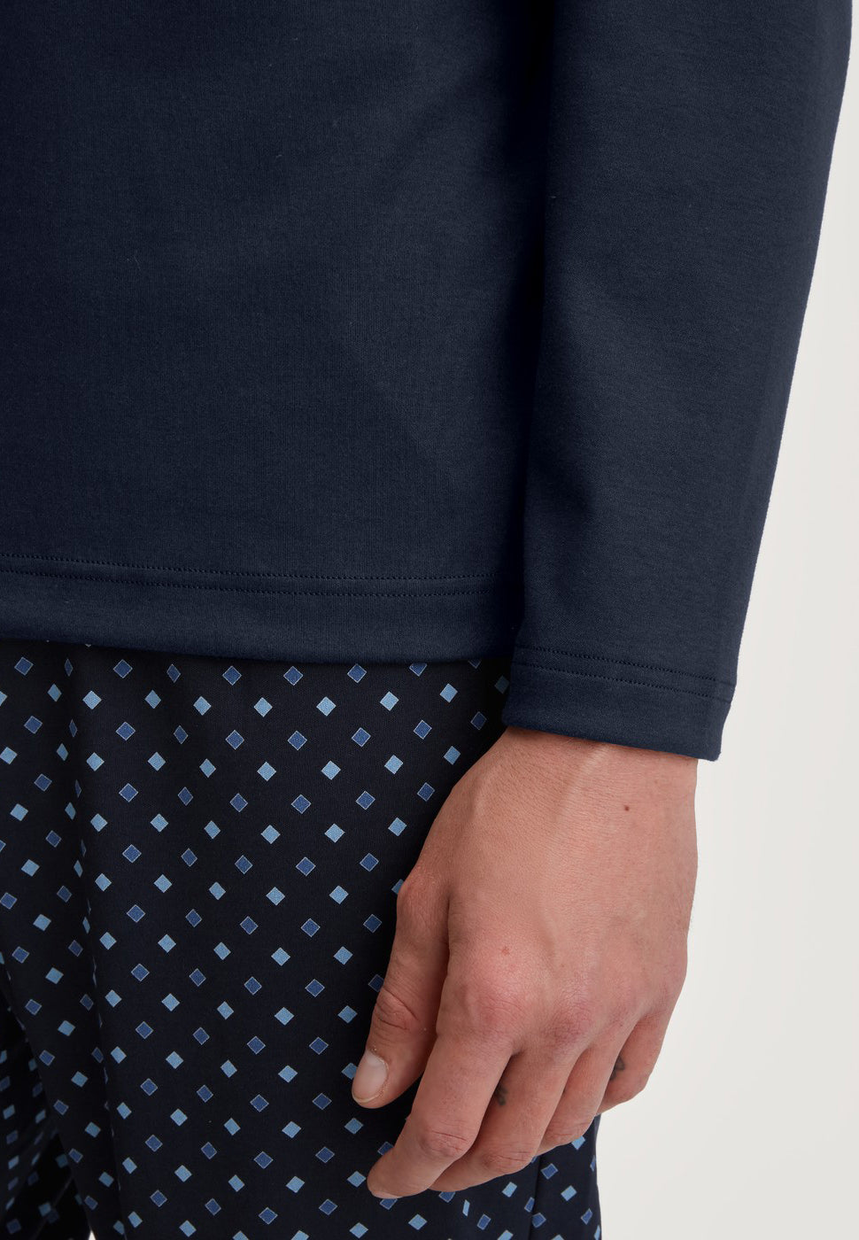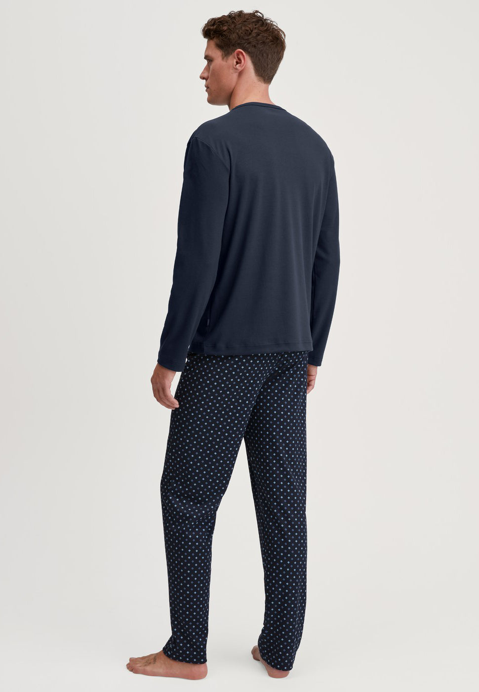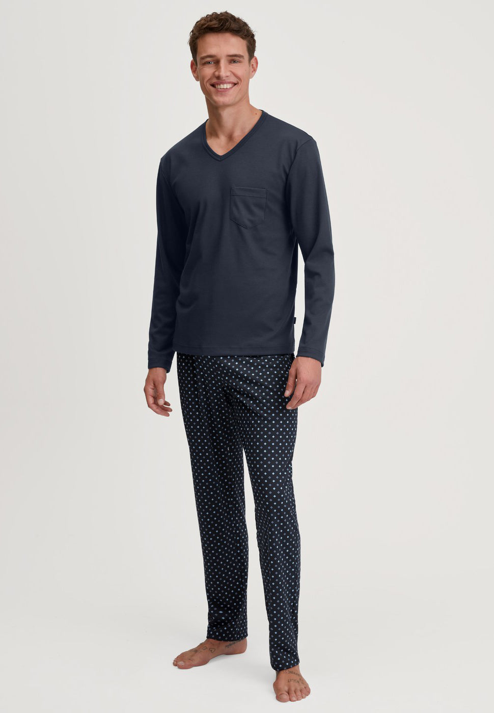 Il pigiama da uomo CALIDA è la scelta ideale per chi cerca comfort e stile anche nei momenti di relax. Realizzato in morbido cotone interlock felpato, questo completo offre una piacevole sensazione di calore sulla pelle, perfetta per le stagioni più fresche. La maglia a manica lunga con scollo a V si presenta in tinta unita, sobria ed elegante, mentre il pantalone con fantasia aggiunge un tocco di personalità al look notte. La qualità dei materiali e la cura dei dettagli, caratteristiche distintive del brand CALIDA, garantiscono una vestibilità comoda e una durata nel tempo, unendo funzionalità e raffinatezza.