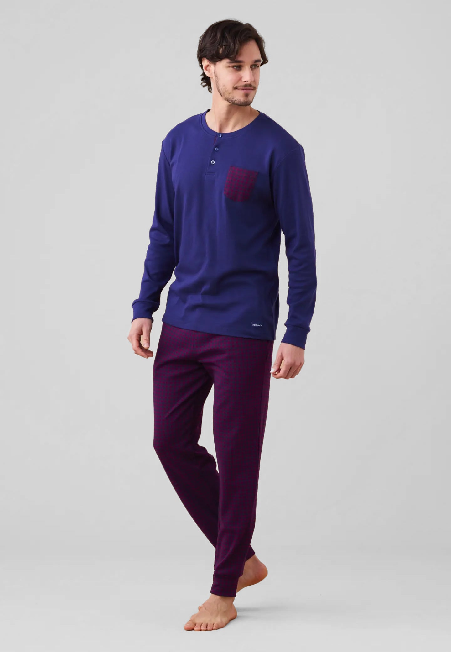 Il pigiama uomo manica lunga collo serafino di NOI DI NOTTE è la scelta ideale per chi cerca comfort e stile durante le notti invernali. Realizzato in caldo interlock di cotone, questo pigiama invernale da uomo garantisce morbidezza, traspirabilità e una piacevole sensazione di calore. La maglia a tinta unita con taschino sul petto si abbina perfettamente al pantalone a quadretti, creando un look moderno e raffinato, perfetto per un relax elegante a casa. Pensato per l’uomo che ama la qualità e l’attenzione ai dettagli, questo pigiama unisce tradizione e design contemporaneo. Scopri la collezione NOI DI NOTTE e rinnova il tuo guardaroba notturno con capi comodi, caldi e dallo stile inconfondibile, ideali per affrontare con piacere le serate più fredde.