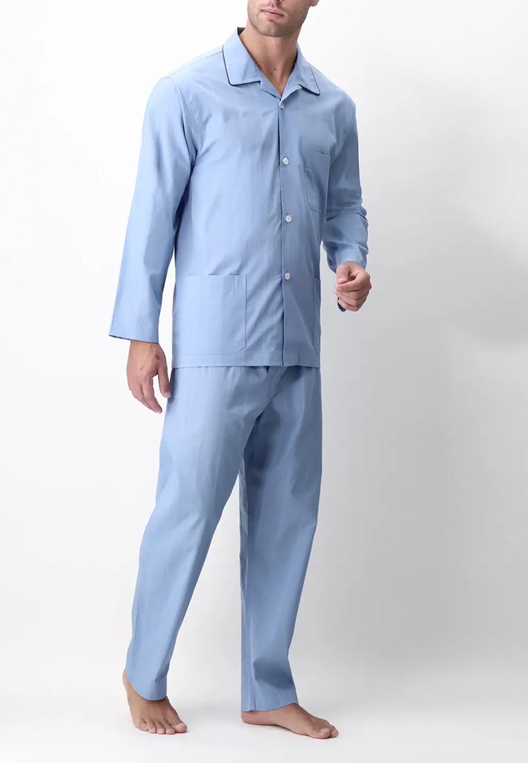 Classico pigiama in pregiato popeline riga raso di cotone, comodo ed elegante. La casacca è a maniche lunghe con collo con profilo di raso, aperta con bottoni e con tre taschine. Il pantalone lungo ha una vestibilità comoda, è aperto con patta, vita con elastico ricoperto e due bottoni per la regolazione della circonferenza vita.