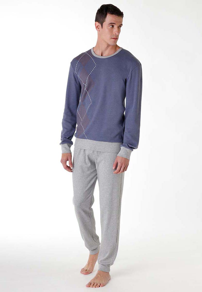 Esplora il comfort serale con il Pigiama da uomo girocollo a maniche lunghe LOVABLE 9L0CYR. Realizzato in morbido interlock, offre una sensazione avvolgente. La stampa piazzata di moderne losanghe aggiunge uno stile unico. Il pantalone presenta polsini comodi. Sperimenta il relax con stile senza compromessi. Perfetto per serate distese o notti ristoratrici.