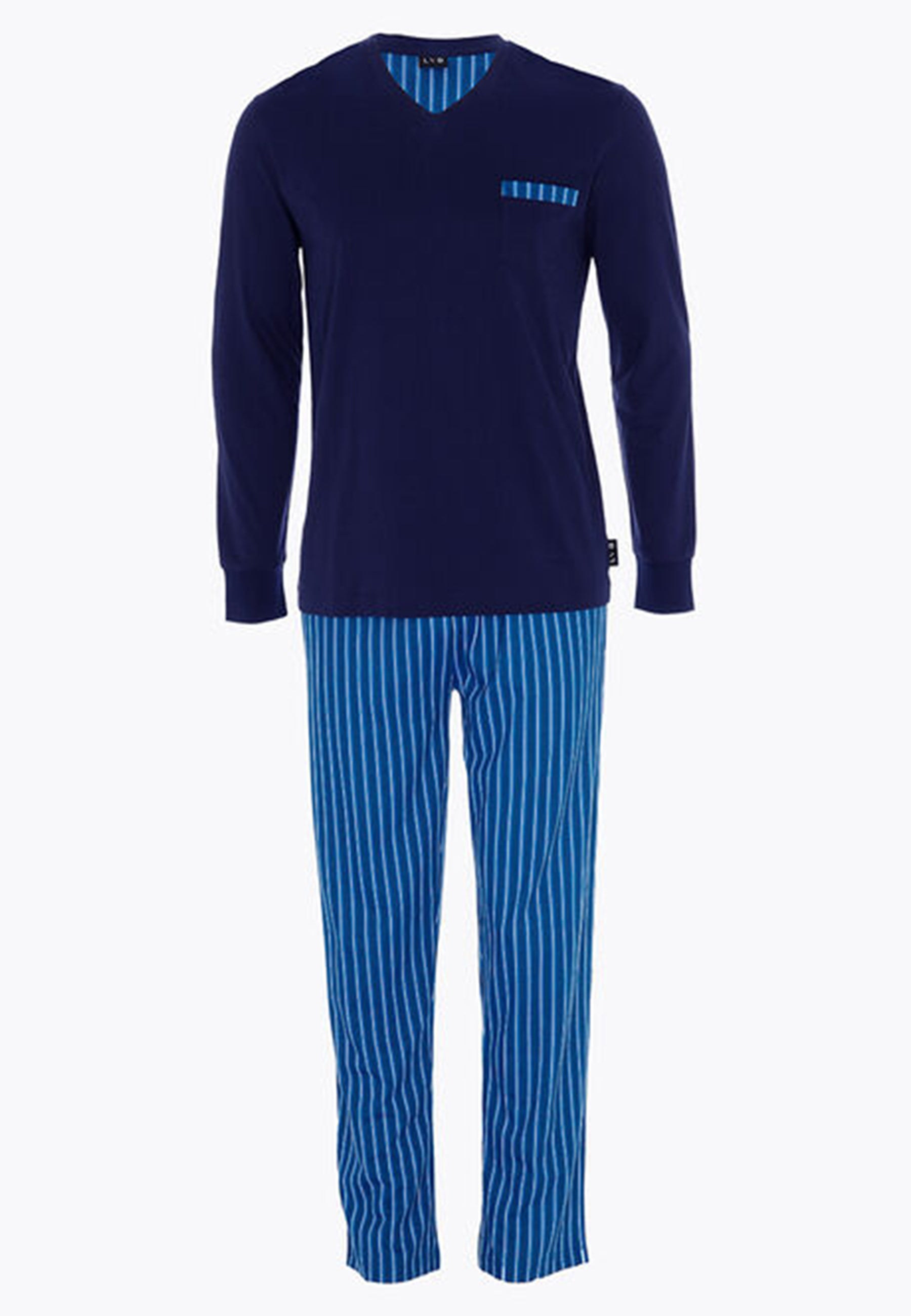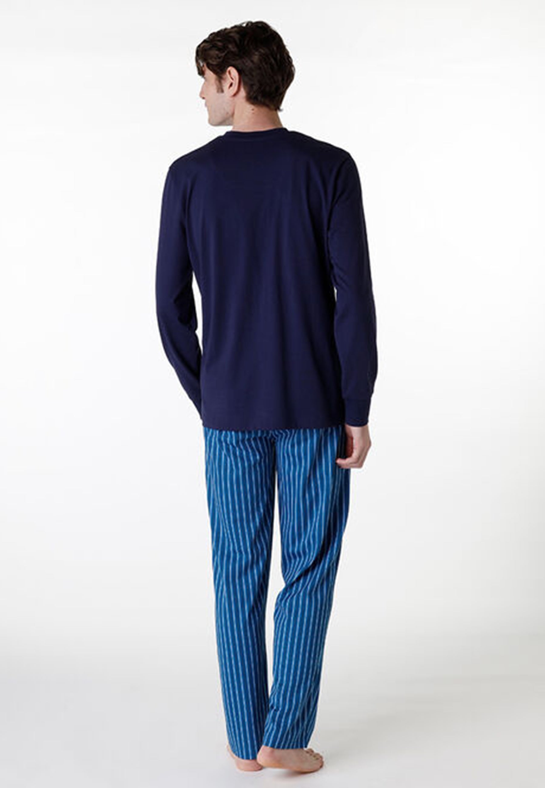 Scopri il comfort e lo stile del pigiama lungo da uomo LOVABLE, realizzato in morbido jersey di puro cotone leggero per una sensazione di freschezza e benessere sulla pelle. La maglia con scollo a V assicura un tocco di eleganza e libertà di movimento, mentre il pantalone a righe aggiunge un dettaglio raffinato e contemporaneo. Perfetto per le notti più rilassanti, questo pigiama combina qualità, vestibilità impeccabile e design essenziale, ideale per chi cerca comfort senza rinunciare allo stile.