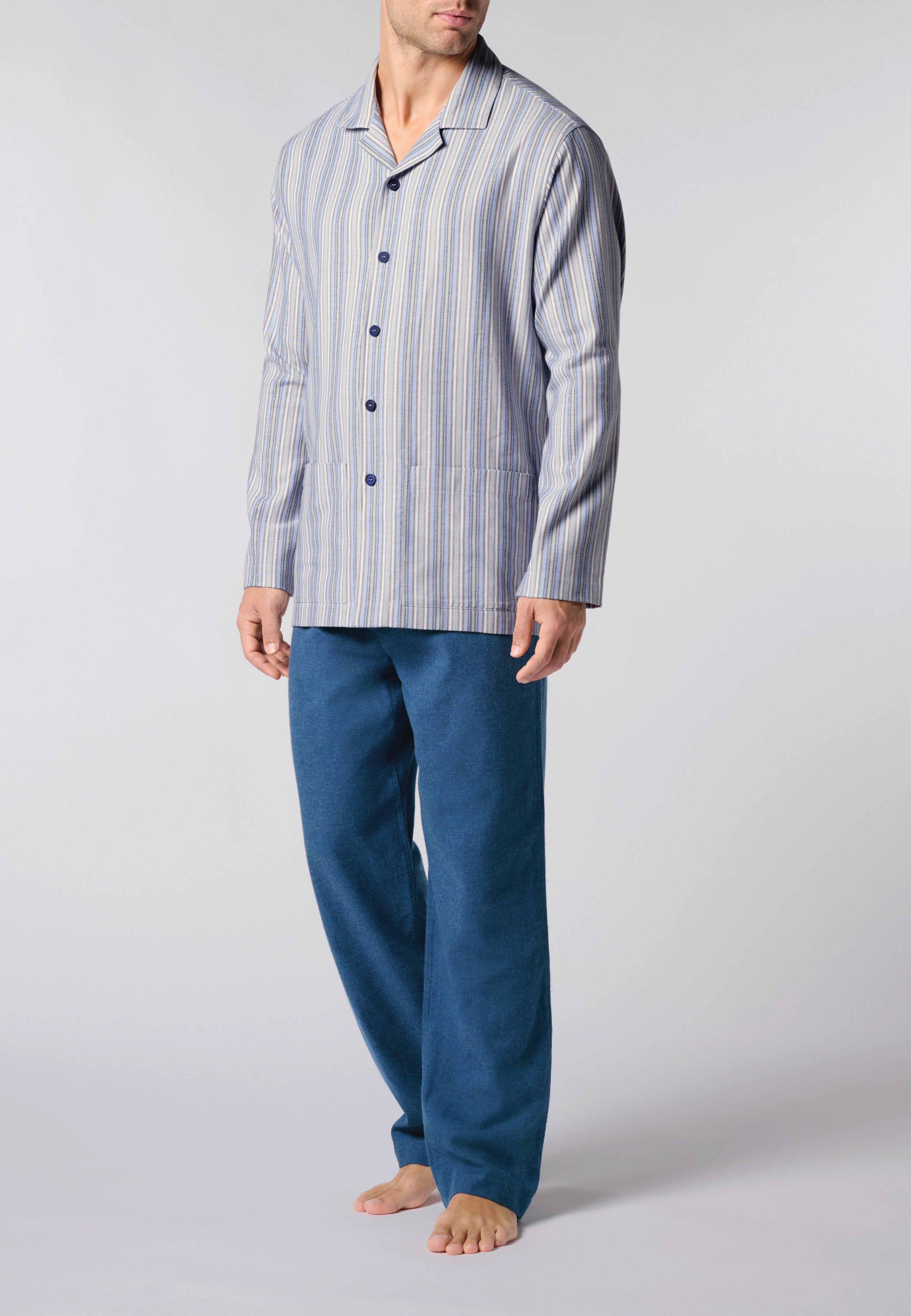 Pigiama Uomo Manica Lunga Aperto Flanella 100% Cotone PEROFIL VPRT93214