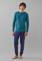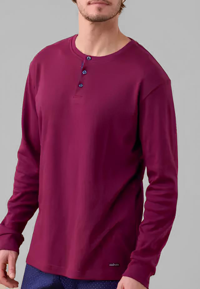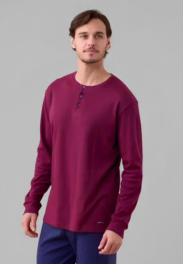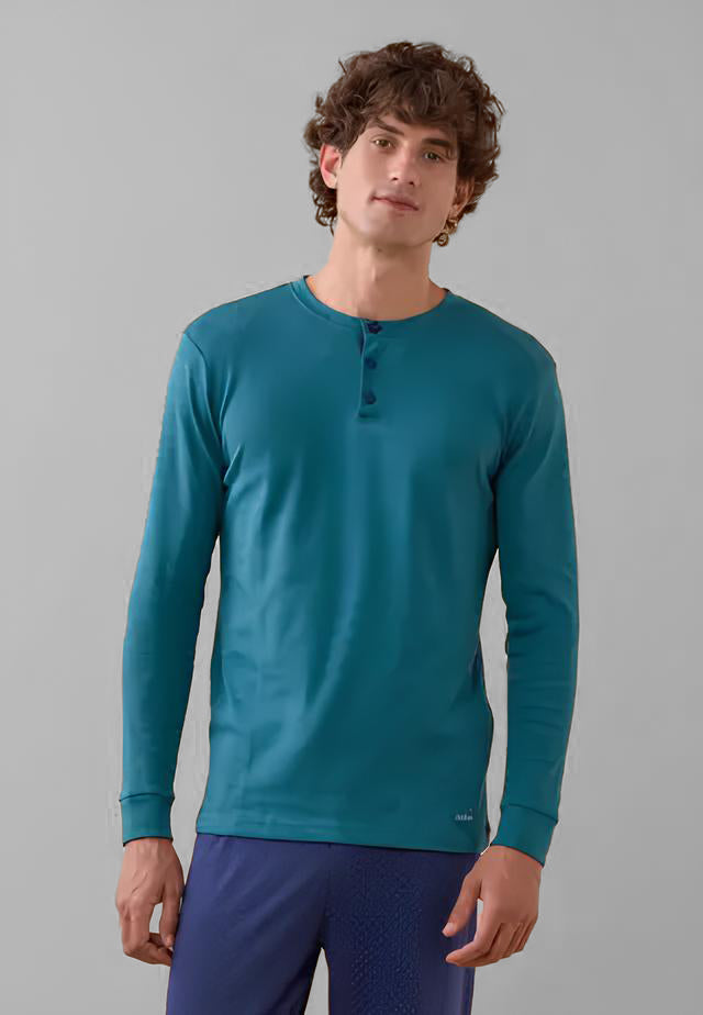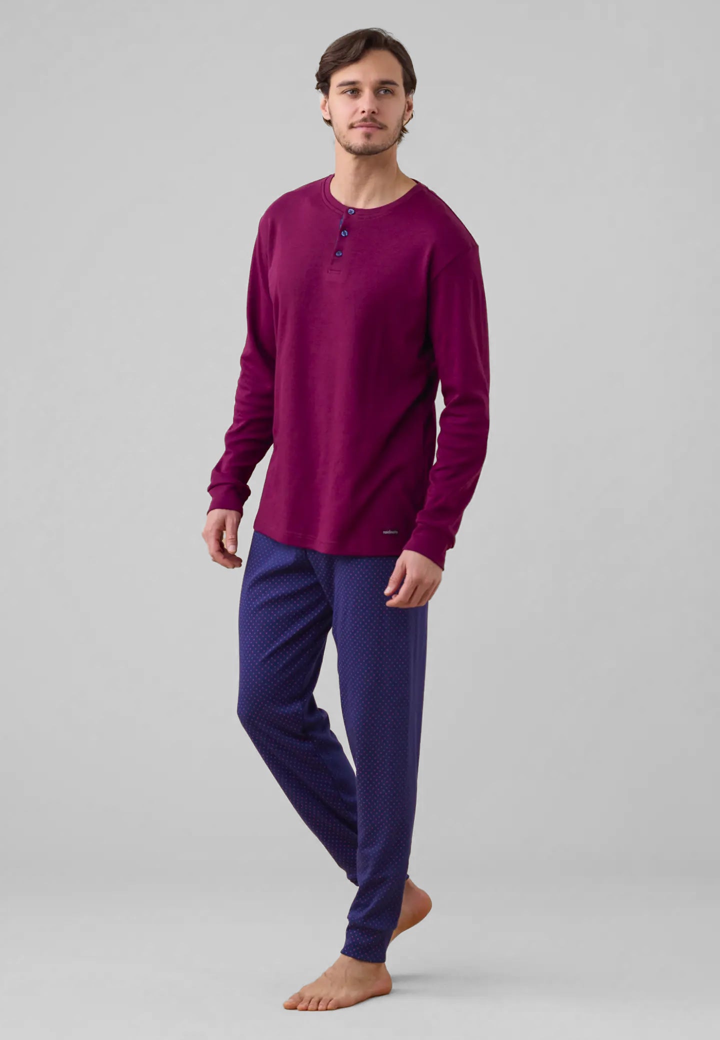 Il pigiama da uomo a manica lunga di NOI DI NOTTE unisce comfort e stile per le serate invernali. Realizzato in caldo interlock di cotone, assicura una piacevole sensazione di morbidezza e calore durante il riposo. La maglia tinta unita con collo serafino conferisce un tocco elegante e versatile, mentre il pantalone con piccoli pois aggiunge un dettaglio raffinato e moderno. Questo pigiama invernale è la scelta ideale per chi cerca un capo pratico, confortevole e curato nei dettagli, perfetto per accompagnare i momenti di relax con un’eleganza discreta.