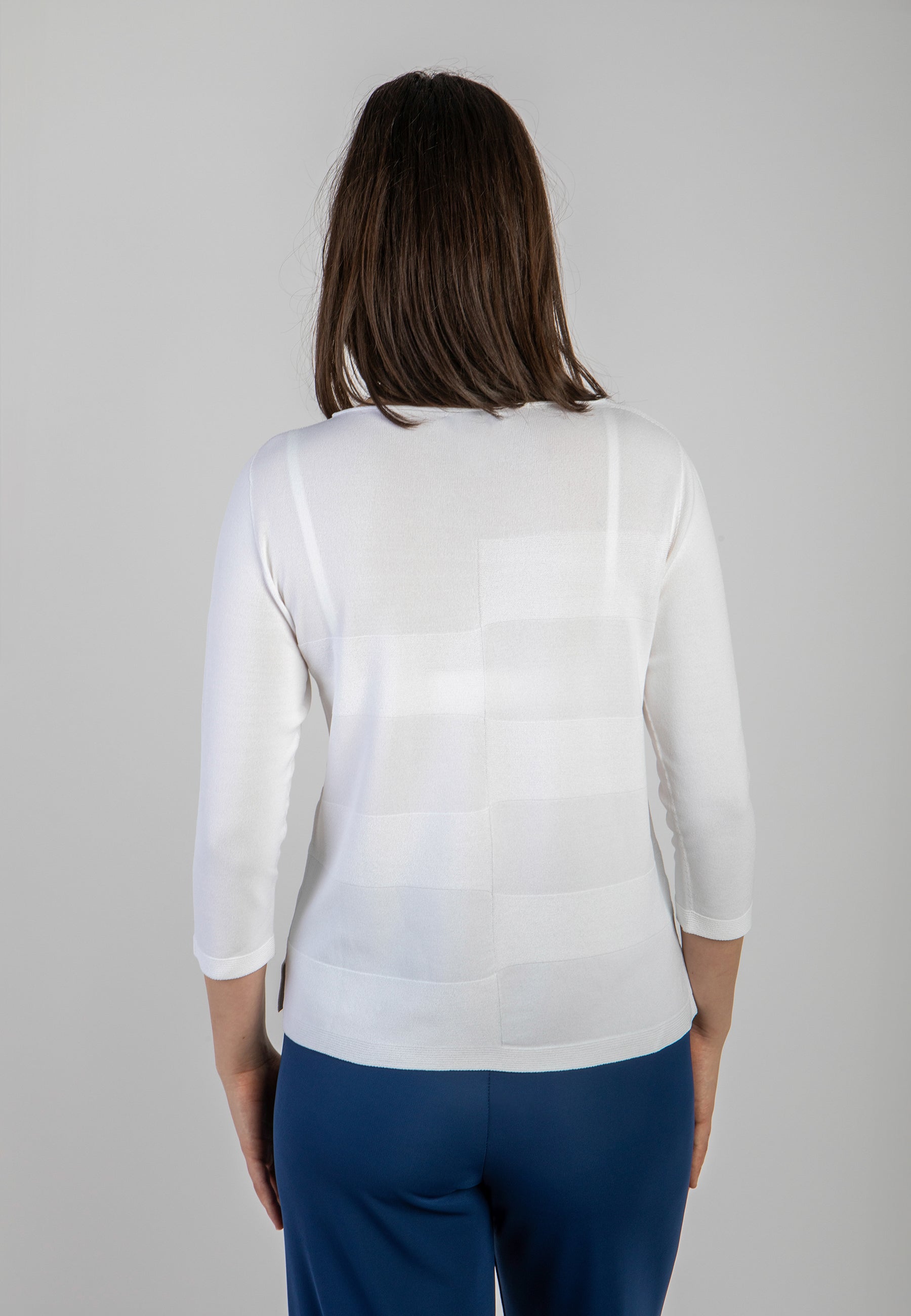 La maglia manica tre quarti lavorata con quadri in viscosa è un capo unico e di qualità. Il suo filato leggero permette di indossarla comodamente durante tutte le stagioni. Realizzata in Italia, garantisce un'ottima vestibilità e uno stile raffinato. Un must-have per chi ama la moda e la cura dei dettagli. Capo Prodotto in Italia. Made in Italy.