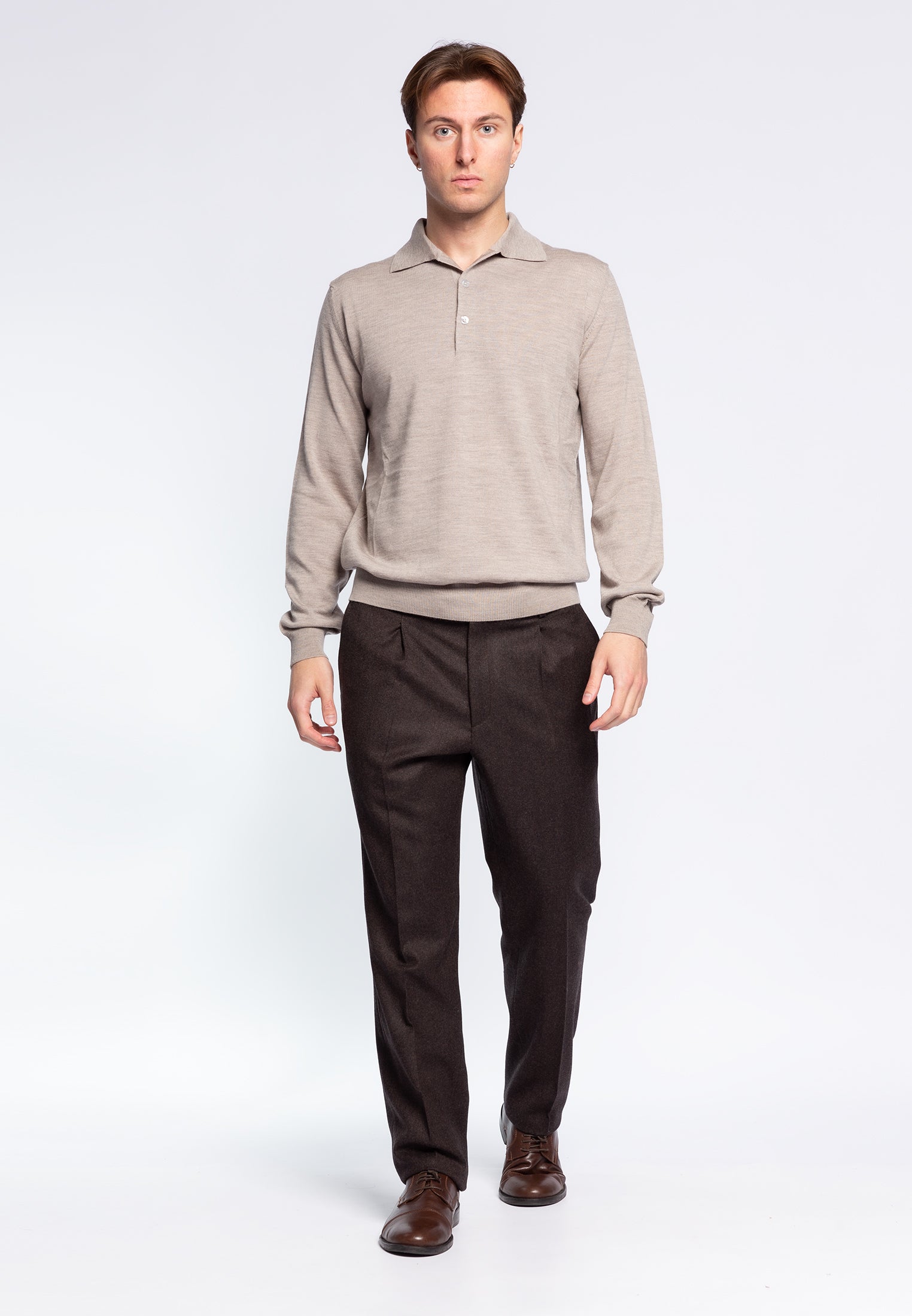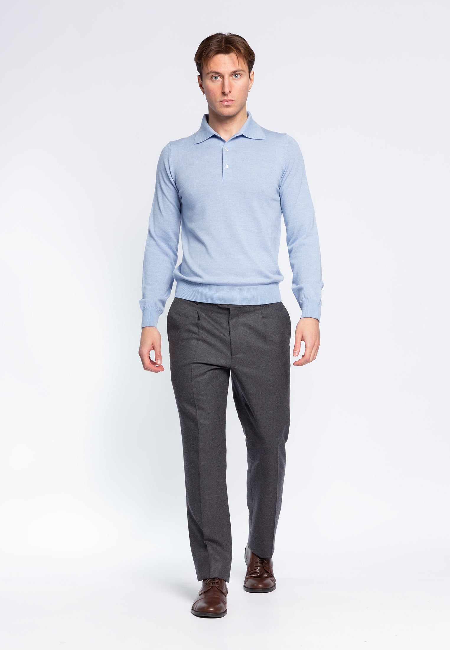 Esplora l'eleganza senza tempo con la nostra Polo in pura lana merinos, realizzata con maestria artigianale italiana. Il tessuto, tinto in filo per garantire una colorazione vibrante e duratura, offre una vestibilità classica che si adatta perfettamente al tuo stile. Con un peso sottogiacca ottimale, questa polo è l'ideale per creare un look moderno ed elegante. Scopri la nostra esclusiva gamma di prodotti, interamente realizzati in Italia con la pregiata lana merinos al 100%. Aggiungi un tocco di raffinatezza al tuo guardaroba con la nostra collezione di alta qualità.