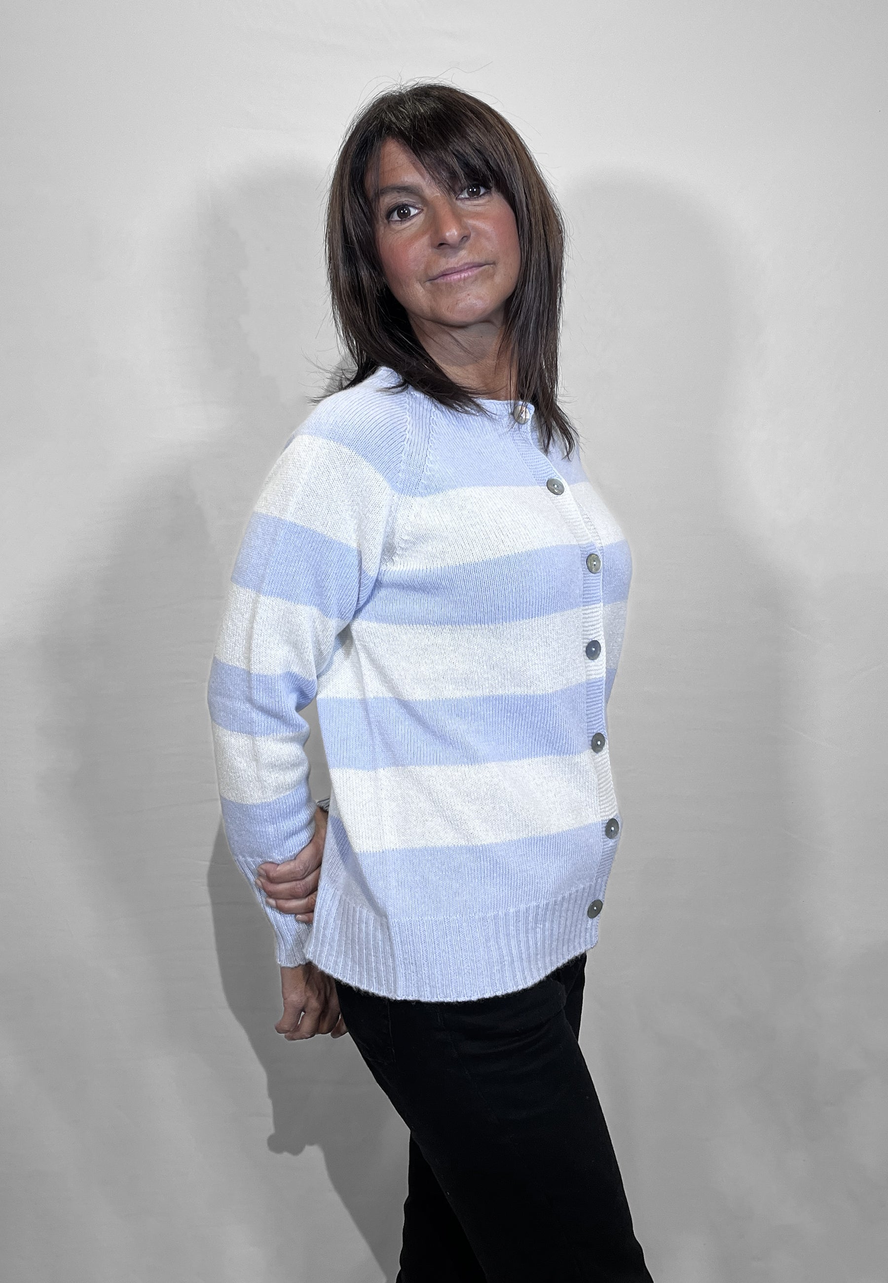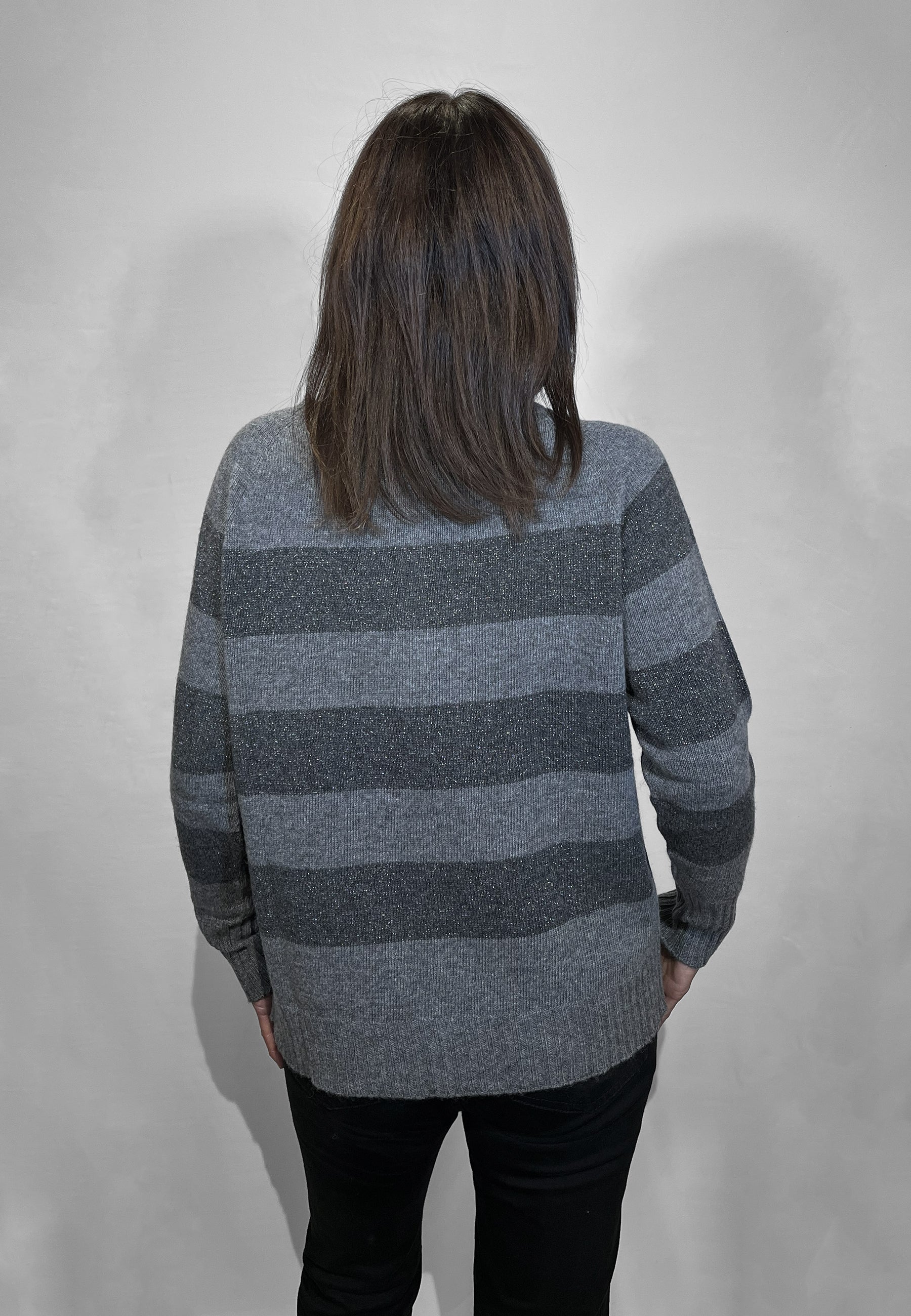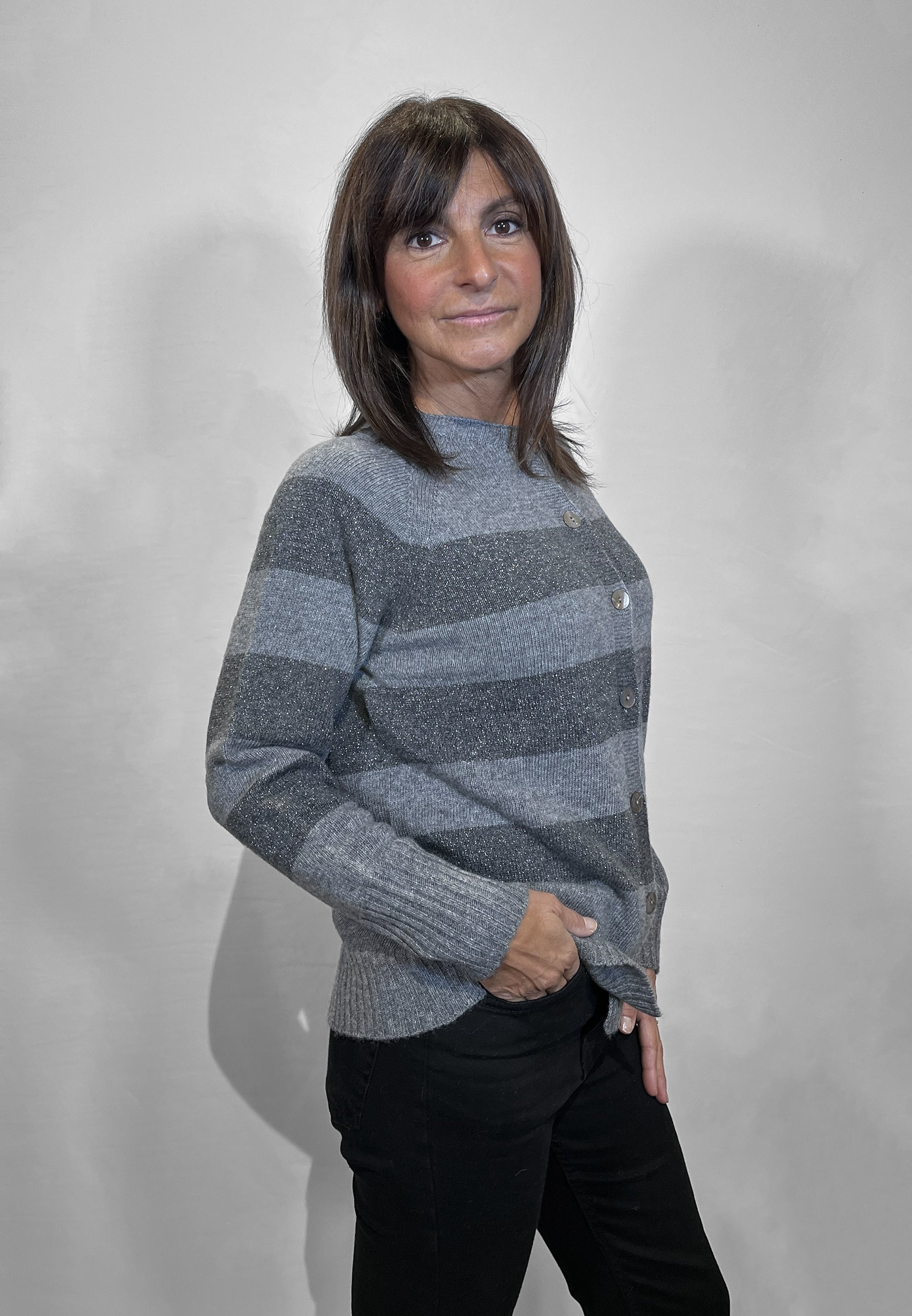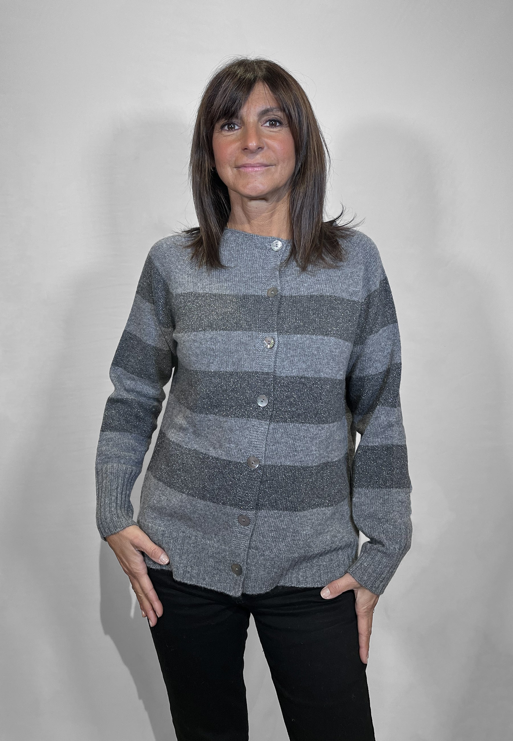 PREMODE Giacca maglia donna a coreana rigata lana cashmere e lurex ART. 345522
