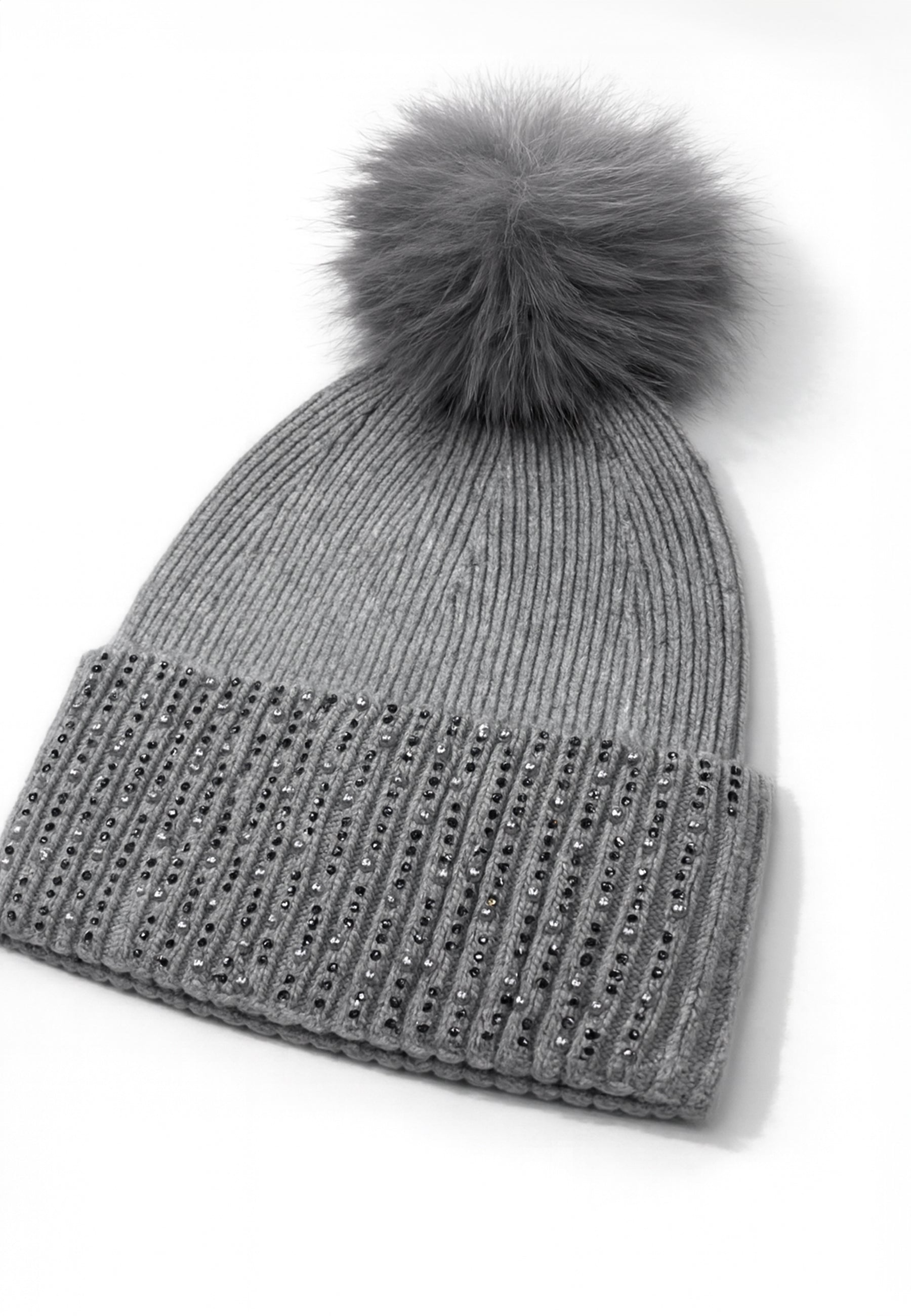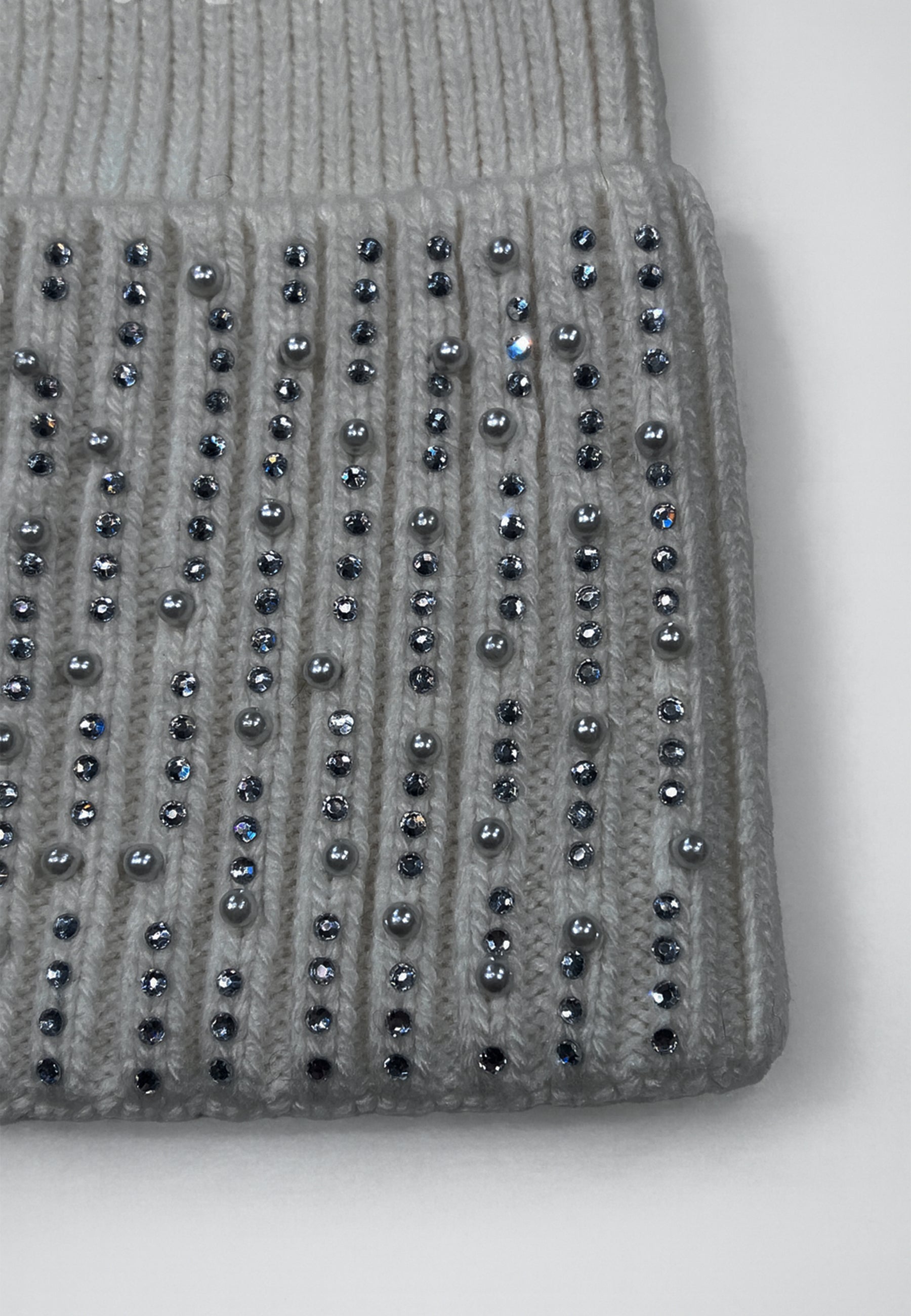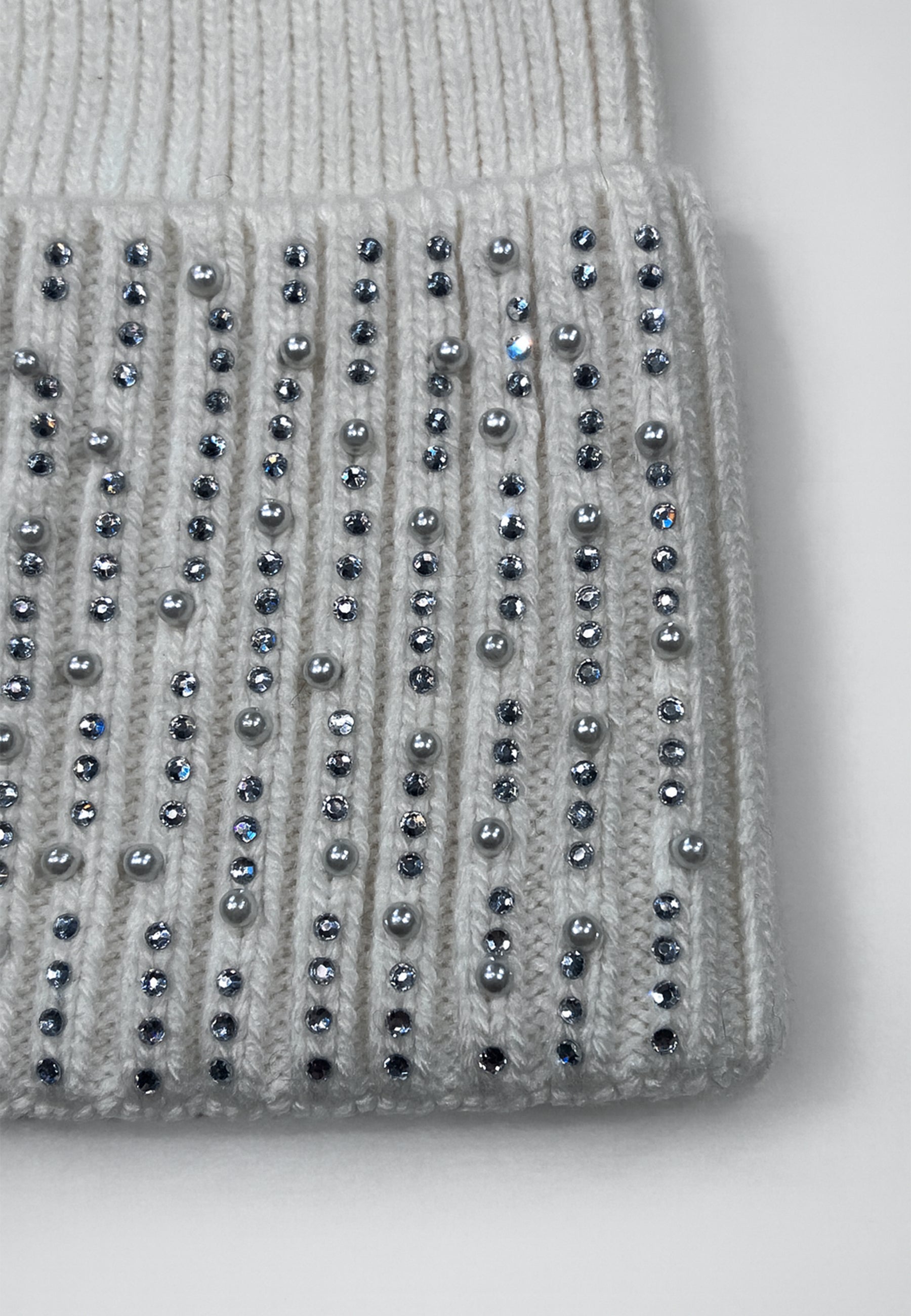 SUSY MIX Cuffia Donna in Maglia Bordo a Coste con Perline e Pom Pom ART. HATCA436