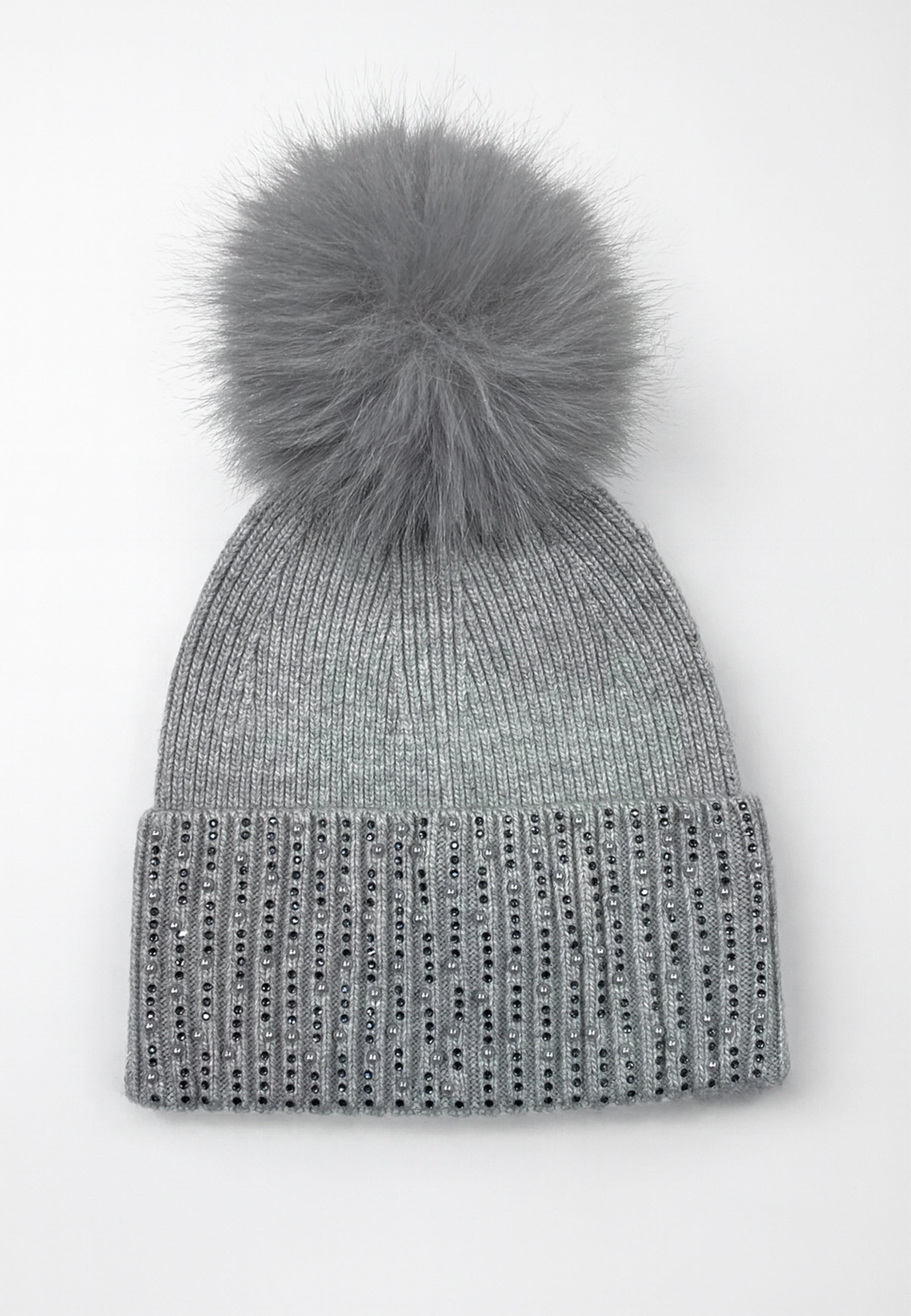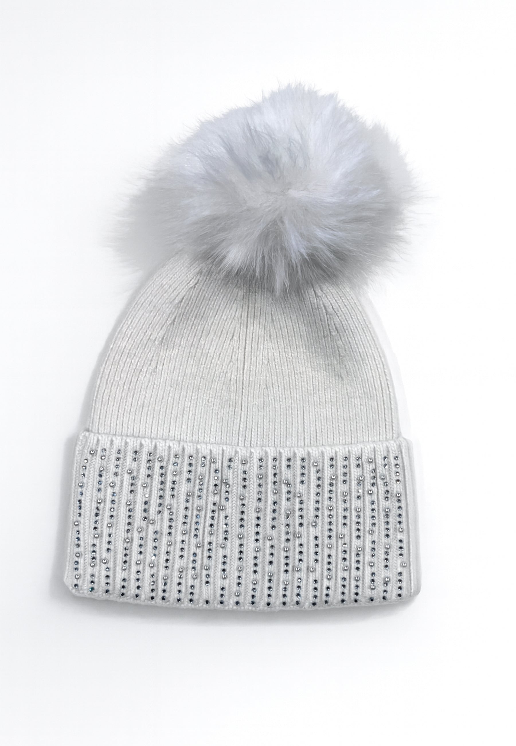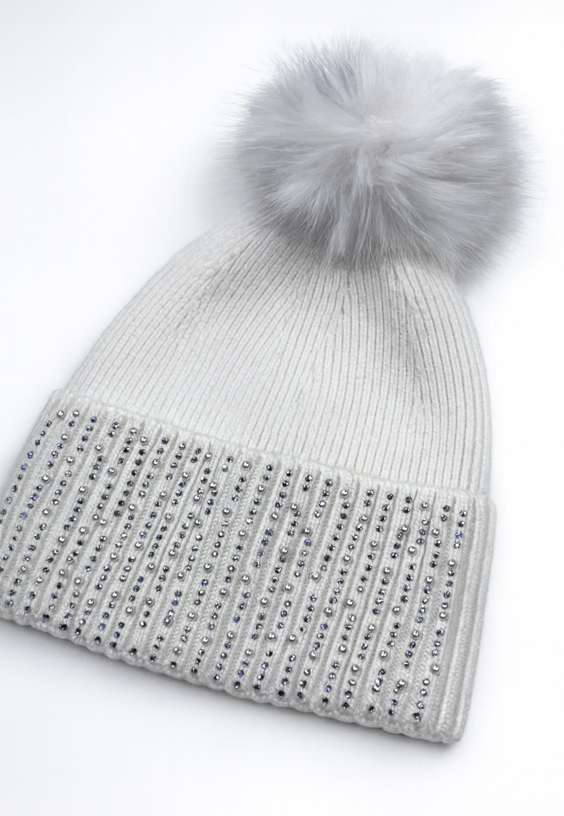 SUSY MIX Cuffia Donna in Maglia Bordo a Coste con Perline e Pom Pom ART. HATCA436