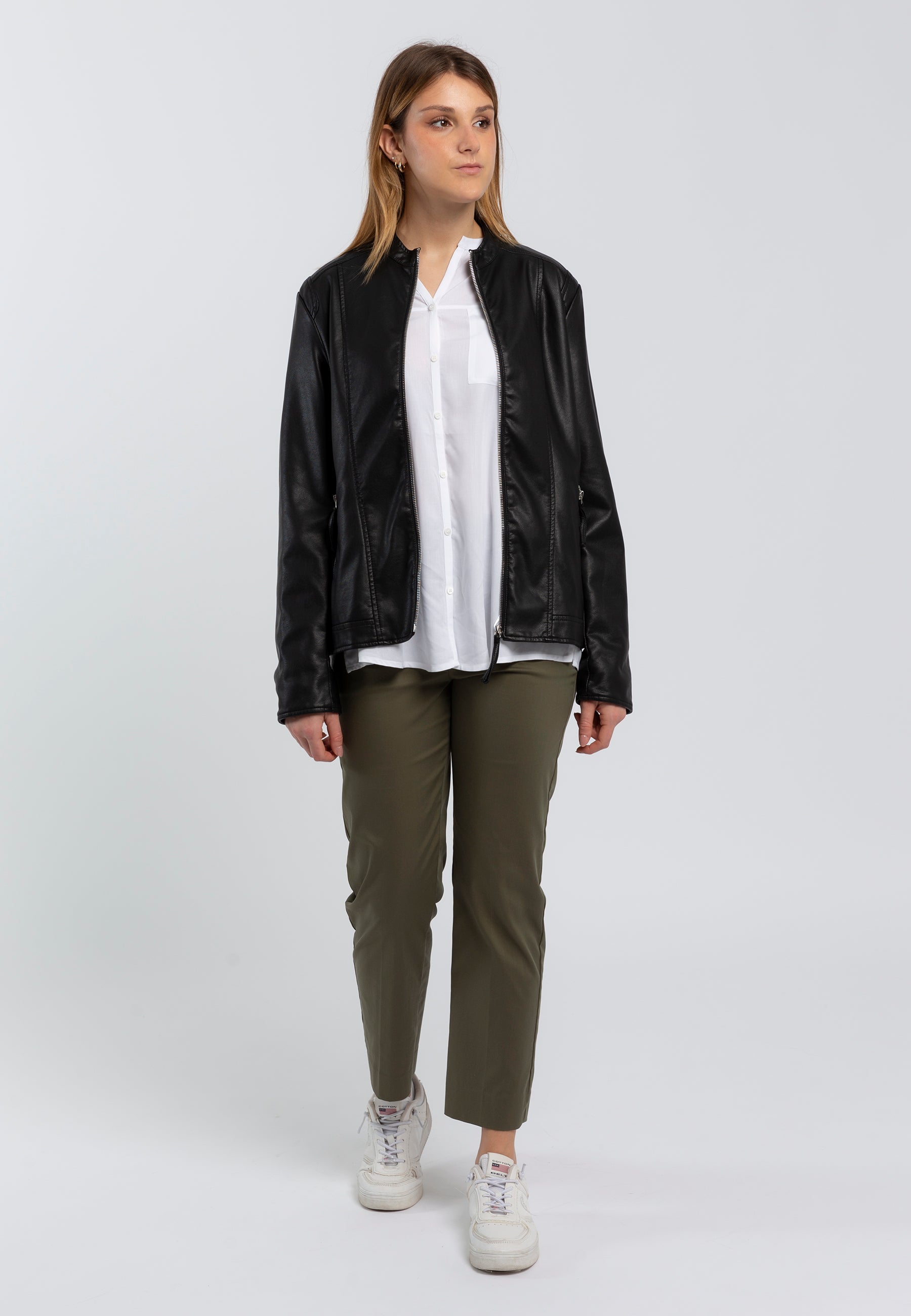Esalta il tuo guardaroba con questo giubbino ecopelle primaverile per donna. Leggero e alla moda, ti farà sentire al top dei trend. La fluidità del tessuto è perfetta per i tuoi movimenti, mentre il peso leggero ti permette di indossarlo in qualsiasi momento della giornata. Aggiungi un tocco di eleganza al tuo outfit e goditi il comfort di questo giubbino.