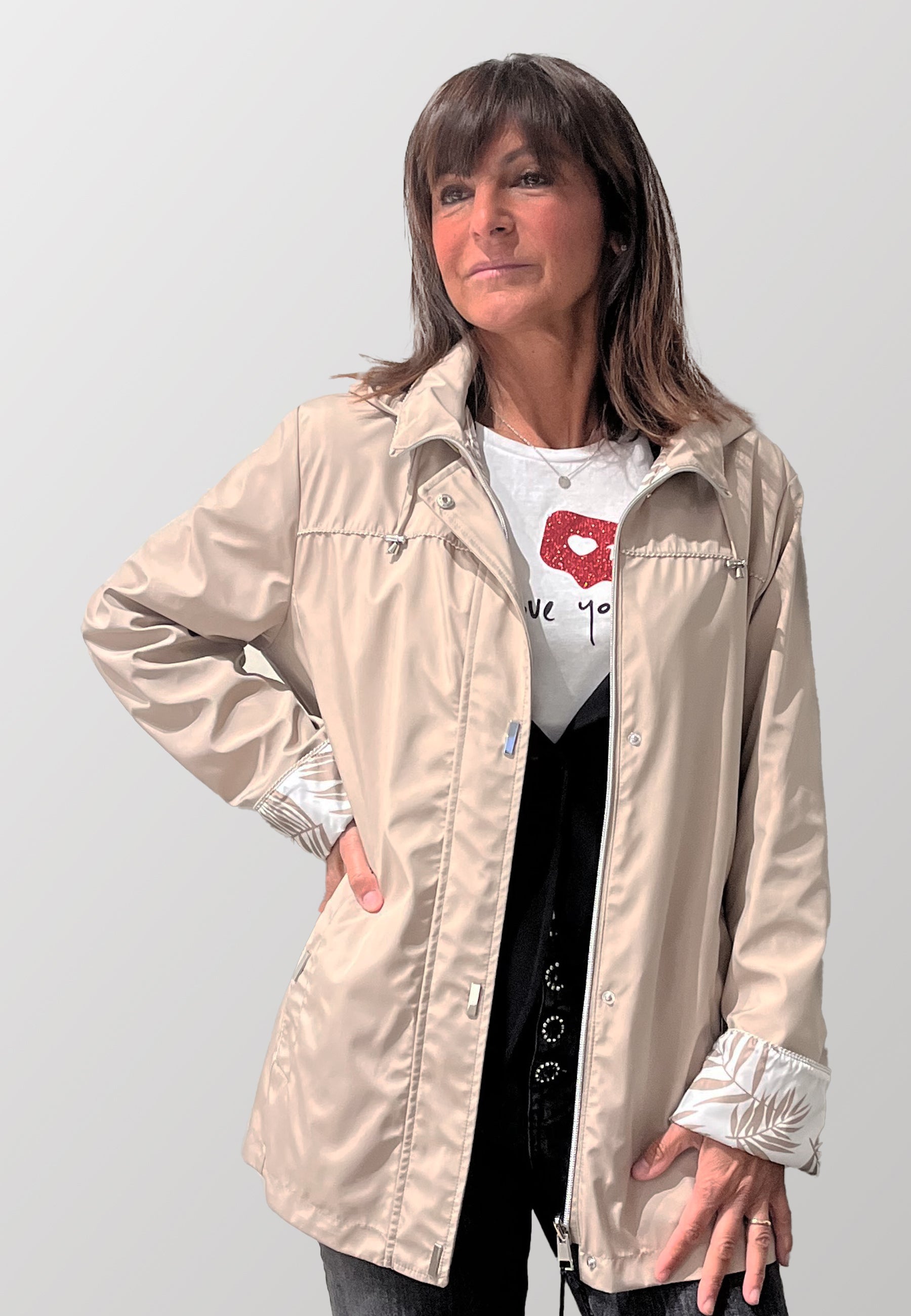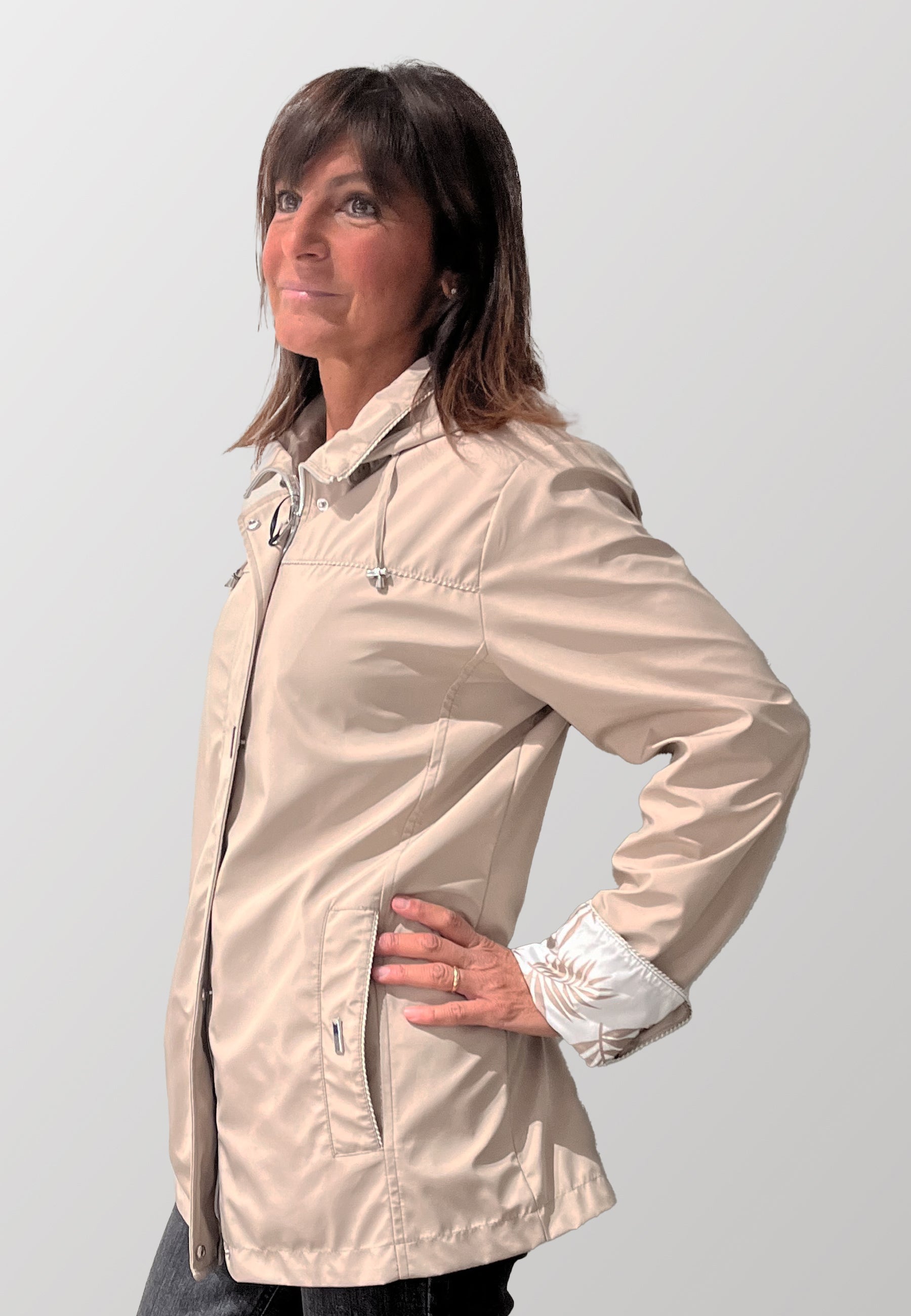 Il giubbino antipioggia reversibile firmato SATINETTE è la scelta ideale per affrontare con stile e praticità le giornate instabili. Pensato per la donna dinamica e attenta al dettaglio, questo capo unisce funzionalità e design grazie alla sua doppia anima: da un lato in tinta unita per un look più sobrio, dall’altro con fantasia per un tocco vivace e originale. La doppia allacciatura con bottoni e cerniera garantisce protezione e comfort, mentre il cappuccio staccabile lo rende adattabile a diverse esigenze e condizioni meteo. Un giubbino versatile e moderno, perfetto per completare con carattere ogni outfit quotidiano.