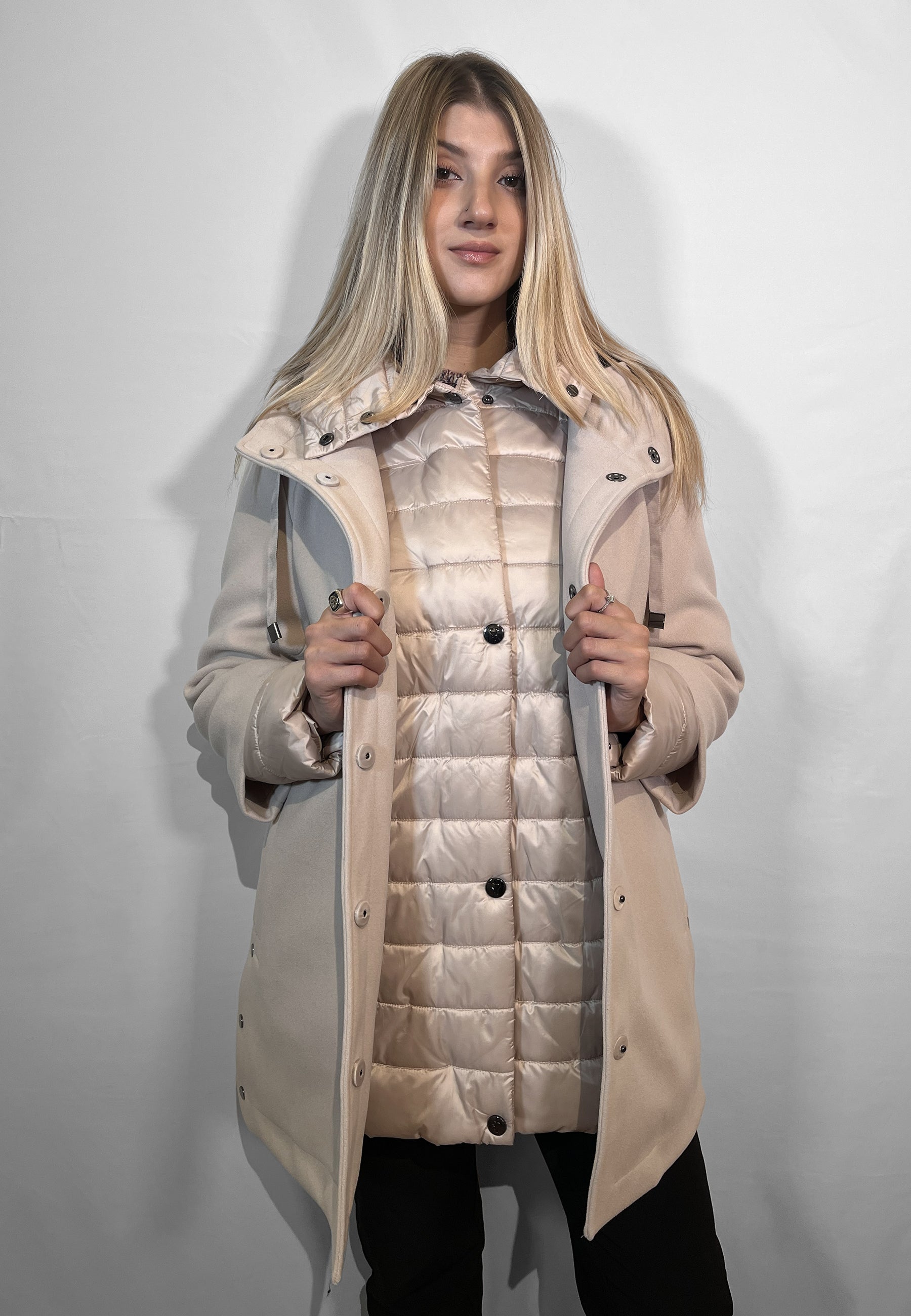 SATINETTE Cappotto 3 in 1 Con Piumino Integrato Sotto ART. LORY LONG 036