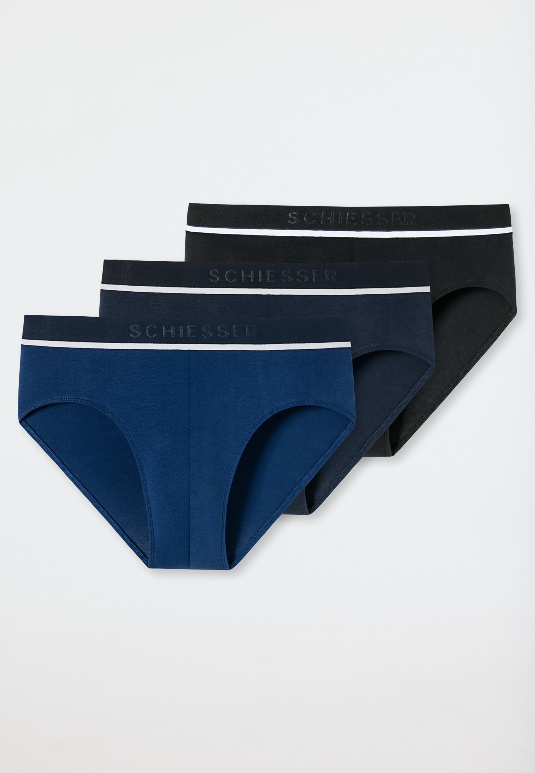 Confezione da 3 Slip da uomo della storica linea 95/5 della Schiesser. Realizzati in un morbido e comodo cotone elasticizzato, garantiscono un confort unico. L'elastico in vita parlato, oltre a dare un tocco di stile, garantisce la massima tenuta e comodità. Inoltre, grazie al cotone organico sostenibile testato nei laboratori Schiesser, questi slip hanno una durata unica anche dopo molti lavaggi