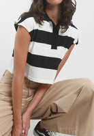 La polo a maniche corte rigata con scollo a V e chiusura con bottoni di SUSY MIX è il capo ideale per la donna che ama un look giovane e dinamico. Realizzata in morbida viscosa, garantisce comfort e leggerezza, adattandosi perfettamente alla silhouette. Il design a righe dona un tocco di freschezza e versatilità, mentre lo scollo a V valorizza il décolleté con eleganza. La chiusura con bottoni aggiunge un dettaglio raffinato, perfetto per creare outfit casual chic adatti a diverse occasioni. Facile da abbinare con jeans, gonne o pantaloni, questa polo è un must-have per chi desidera uno stile moderno e curato in ogni momento della giornata.