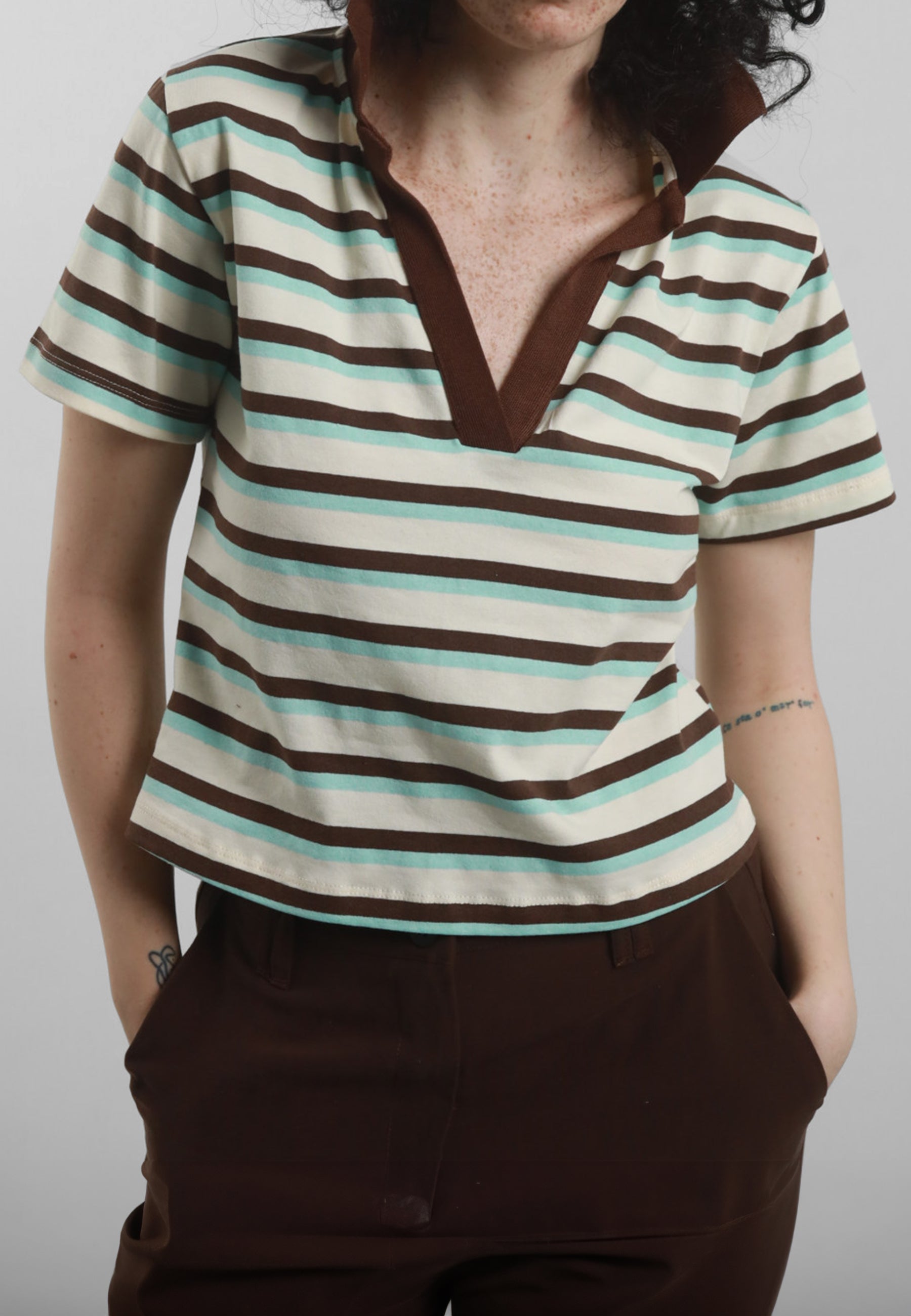 La polo crop in fantasia righe con colletto a contrasto di SUSY MIX è un capo giovane e dinamico, perfetto per chi cerca uno stile fresco e alla moda. Realizzata in jersey di cotone, questa polo garantisce comfort e traspirabilità, ideale per la stagione calda. La sua fantasia a righe dona un tocco vivace e moderno, mentre il colletto a contrasto aggiunge un dettaglio di tendenza che arricchisce l'intero look. Facile da abbinare a jeans, shorts o gonne, questa polo crop rappresenta la scelta ideale per un outfit casual ma ricercato, adatto a diverse occasioni. Con la sua vestibilità giovane e versatile, è un must-have per ogni guardaroba alla moda. Capo prodotto in Italia. Made in Italy.