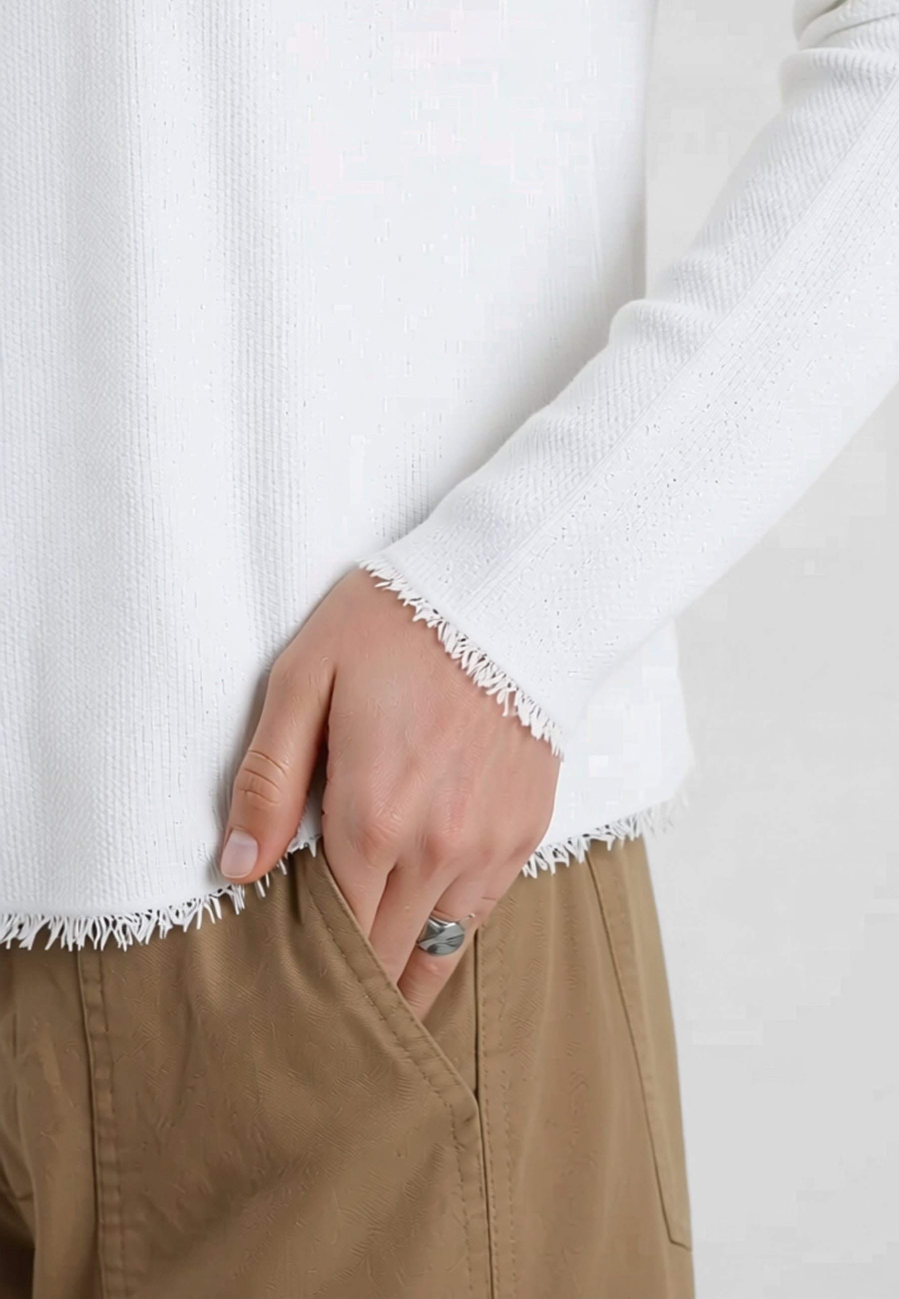 Questo cardigan girocollo Susy Mix interpreta la maglieria femminile in chiave contemporanea, offrendo una soluzione versatile adatta alla mezza stagione. La maglia in viscosa leggermente elasticizzata assicura una vestibilità regolare e piacevole, seguendo le linee del corpo senza costringere. La chiusura con bottoni impreziositi da perle aggiunge un dettaglio elegante e curato, mentre lo sfondo sfrangiato dona al capo un carattere moderno e distintivo.
