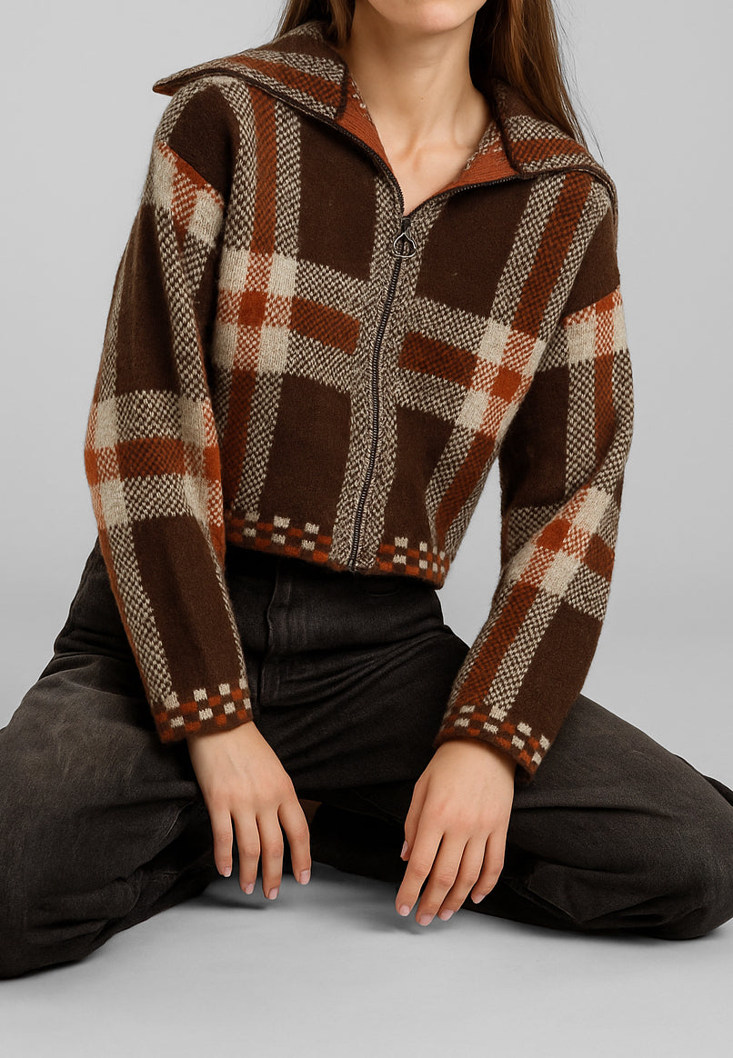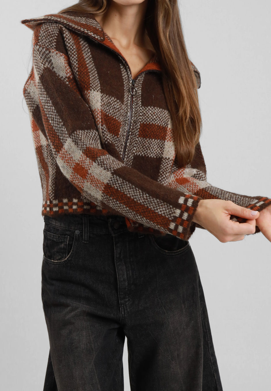 SUSY MIX Maglia Donna alla Moda Zip Collo Over Check