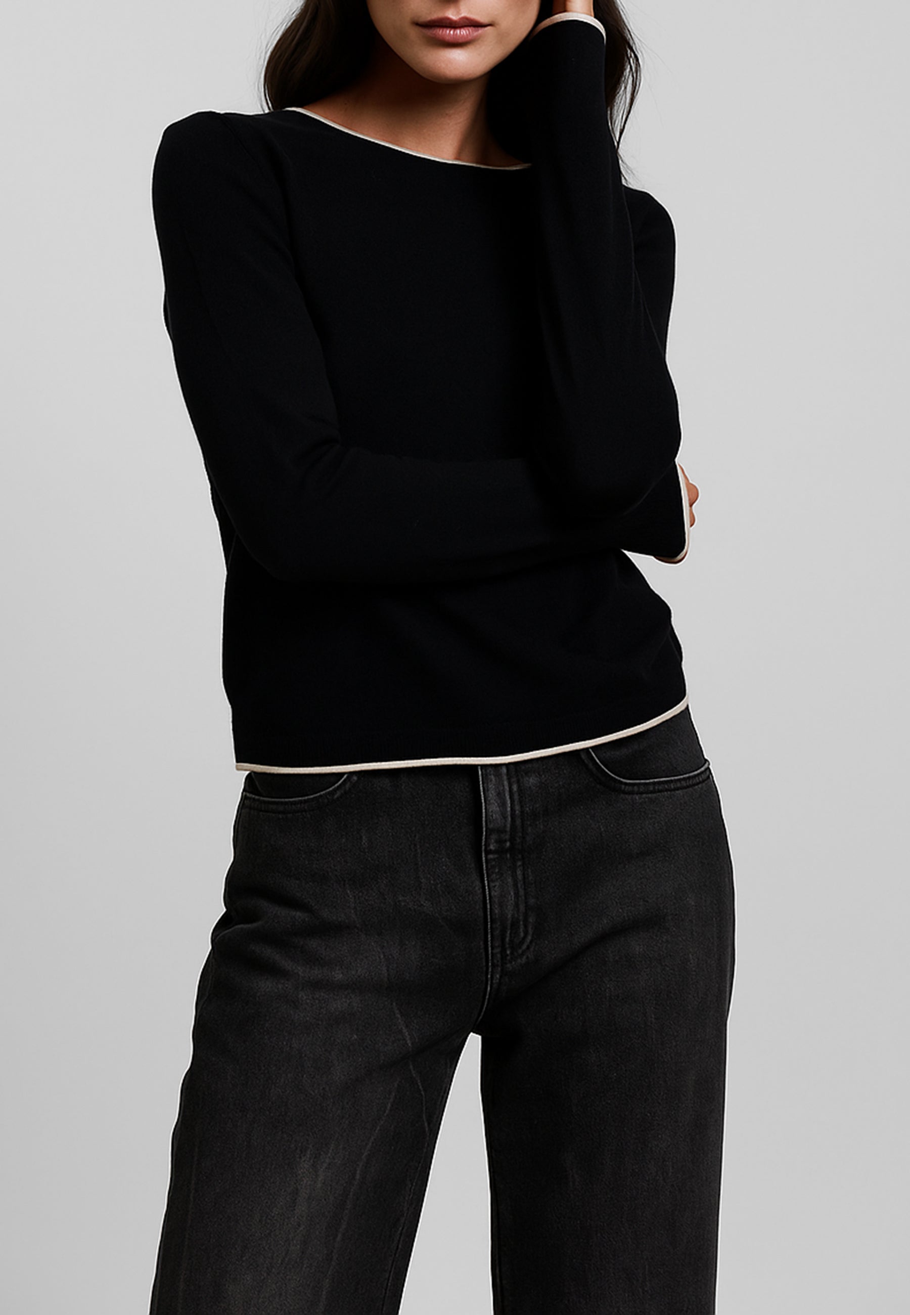 SUSY MIX Maglia Donna Girocollo Dettagli a Contrasto Moda
