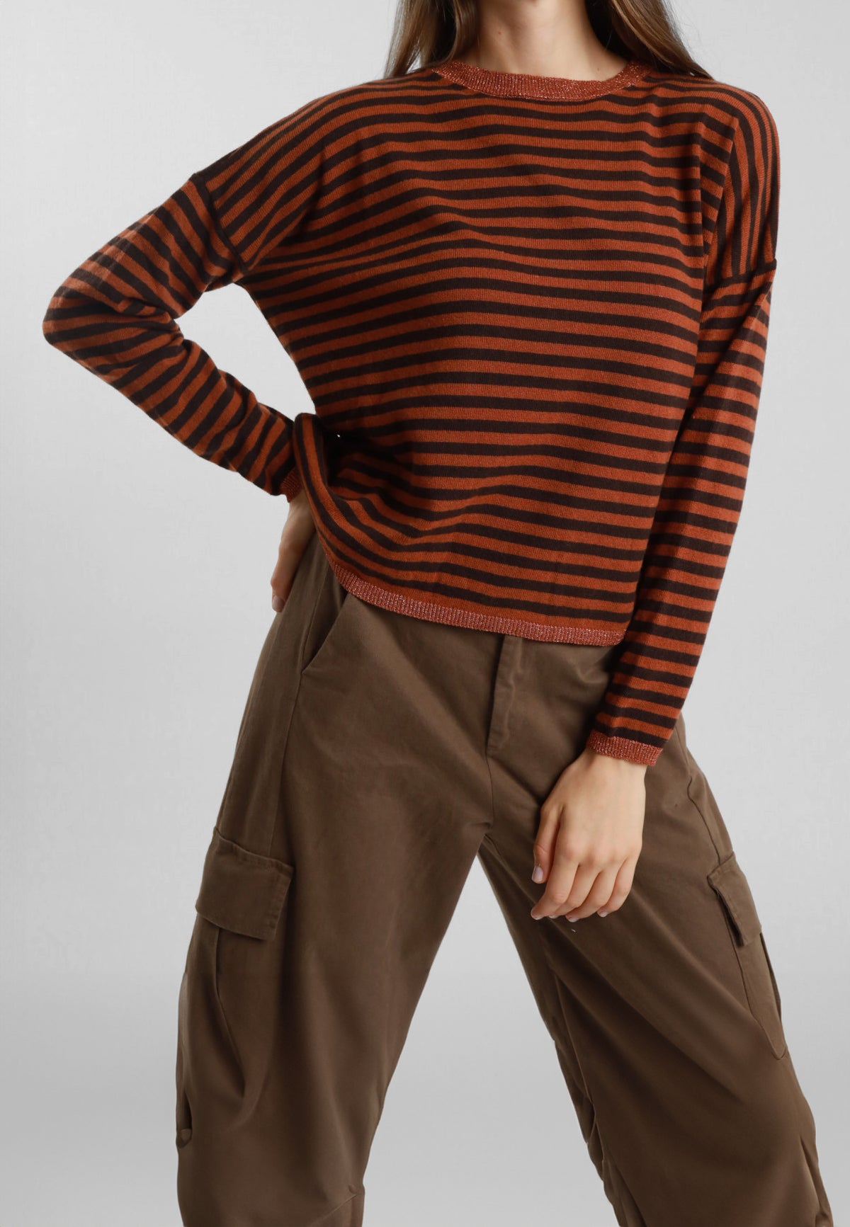 Scopri la maglia girocollo rigata con bordi in lurex SUSYMIX, un capo di abbigliamento donna elegante e alla moda perfetto per chi cerca stile e comfort in un unico prodotto. Questa maglia donna fashion è ideale per look casual chic o outfit più sofisticati, grazie ai dettagli in lurex che aggiungono luminosità e un tocco glamour. La maglia girocollo moda donna SUSYMIX si abbina facilmente a pantaloni, gonne o jeans, diventando un elemento versatile e indispensabile nel guardaroba femminile. Scegliere SUSYMIX significa puntare su abbigliamento femminile di qualità, design italiano e capi alla moda pensati per la donna moderna che vuole vestire con eleganza e originalità in ogni occasione.