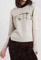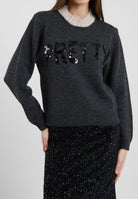 SUSY MIX Maglione con Scritta in Paillettes Donna Caldo Morbido Moda Inverno Qualità ART. 5WM26591